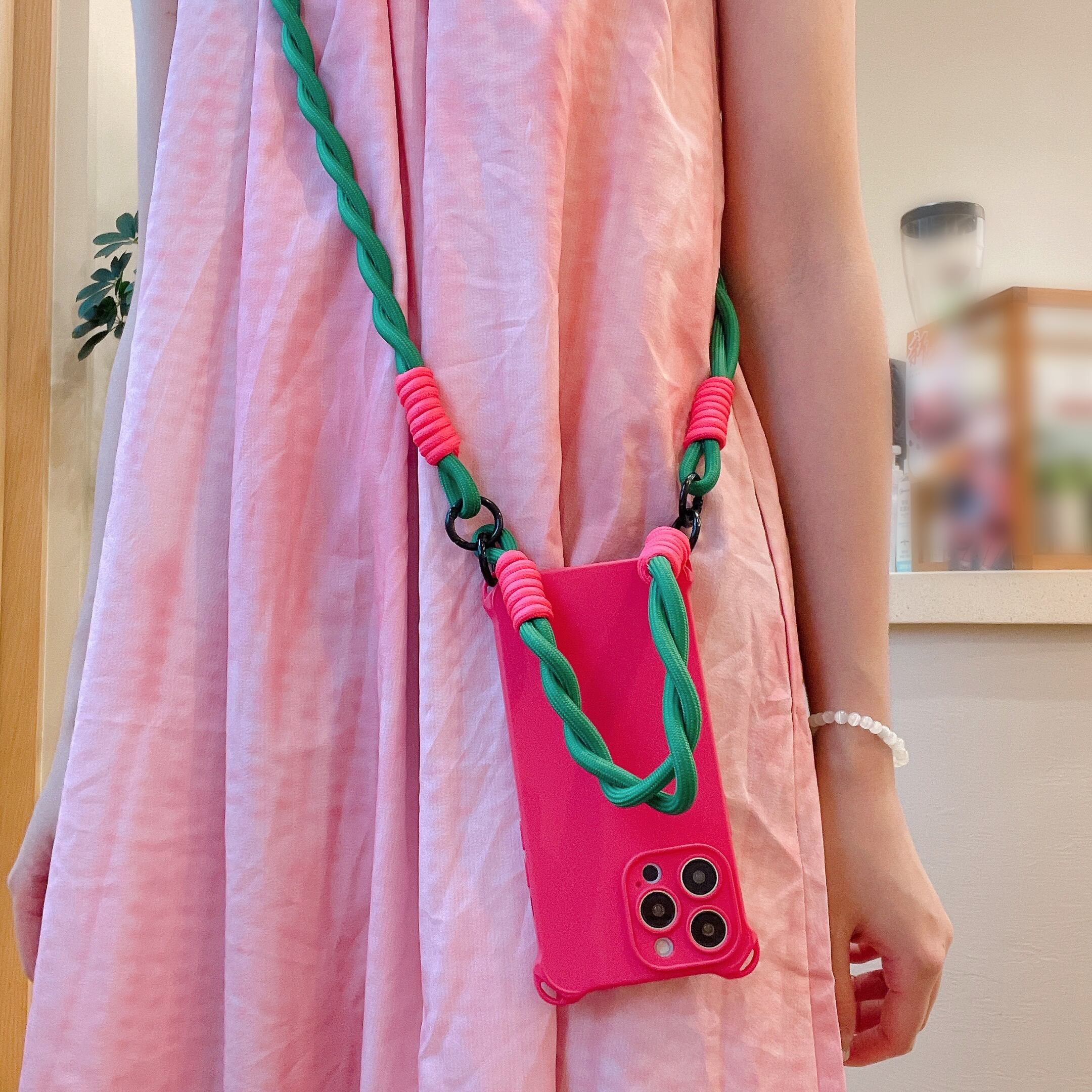 iPhoneをハンズフリーでファッショナブルに持ち歩くことができます。