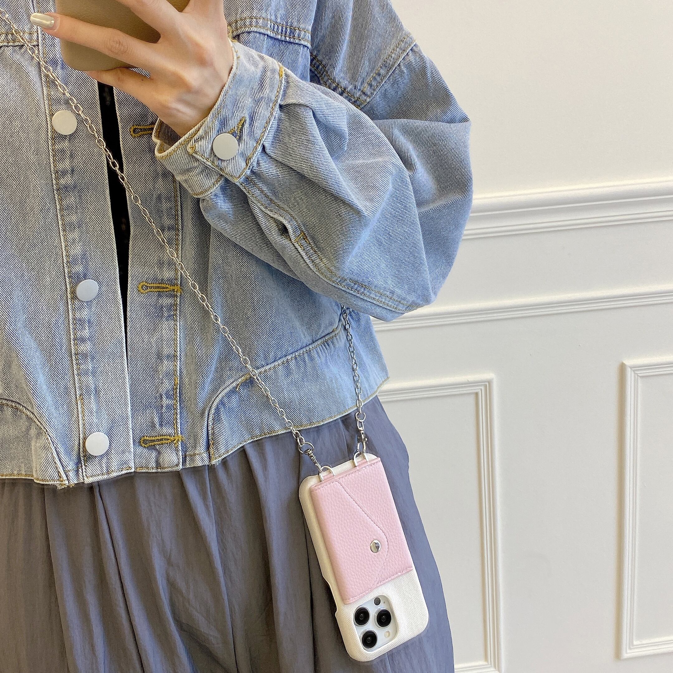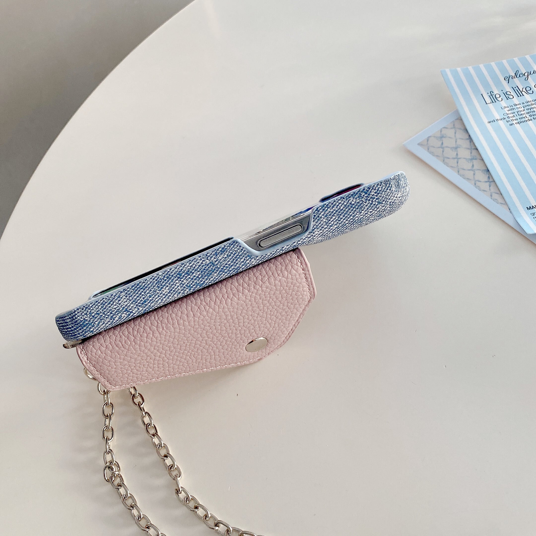 デニム柄 スマホショルダー iPhone 16 15 14 13 12 11 ケース おしゃれ カード収納 チェーンストラップ