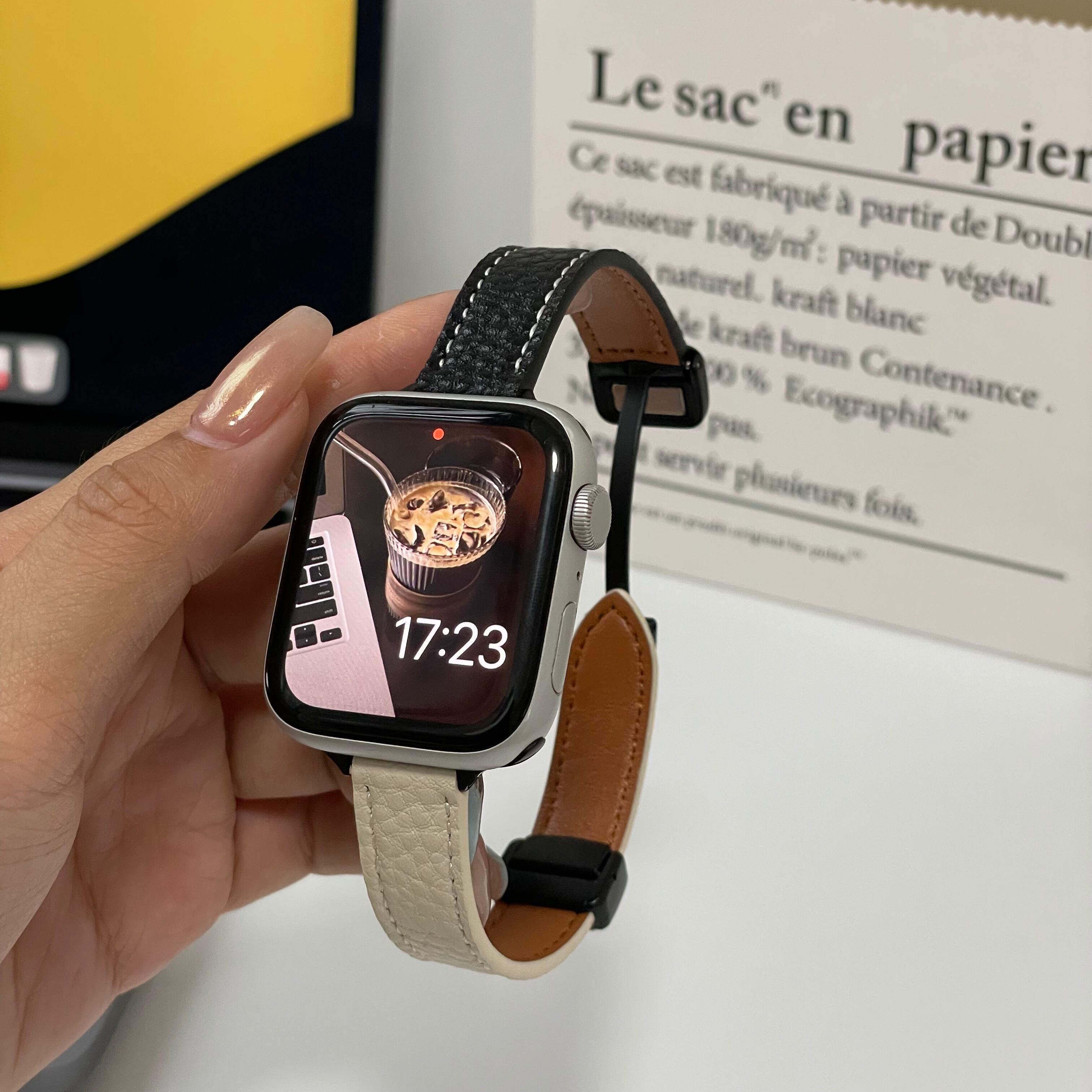 一般的な時計ベルトの半分ほどのスリム幅が特徴的なApple Watchバンド。