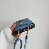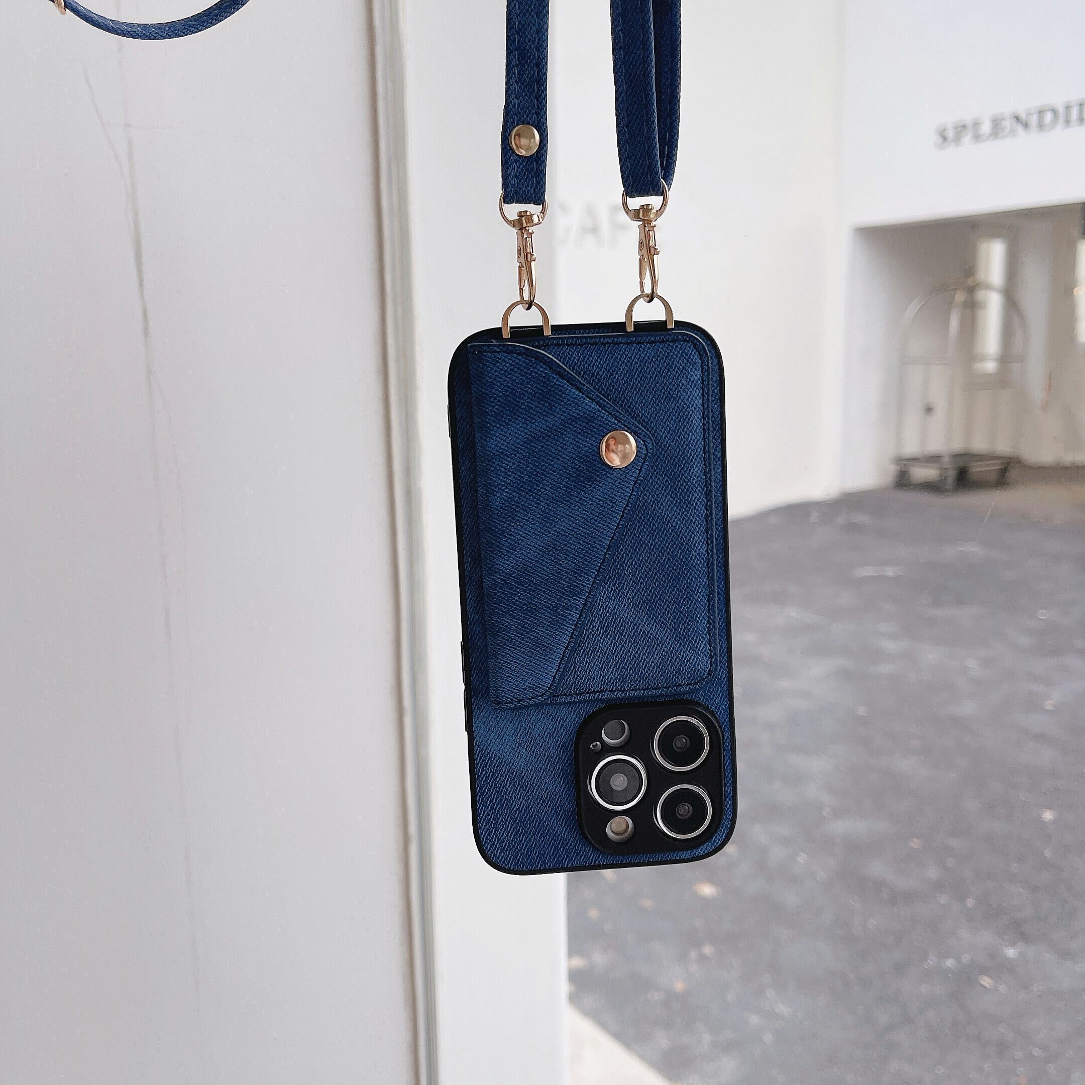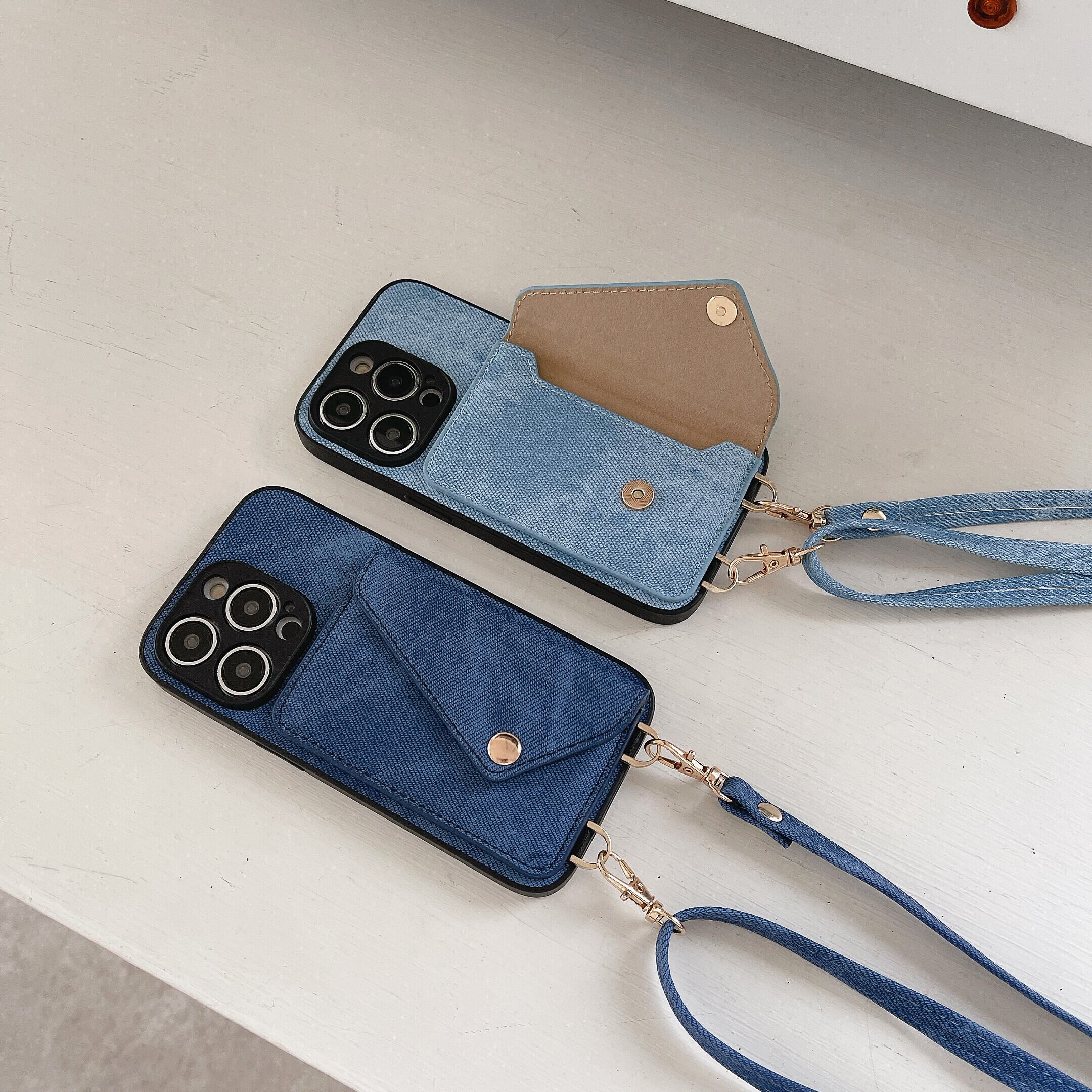 デニム調 iPhoneケース スマホショルダー付き カード収納 背面ケース 落下防止 斜めがけ ストラップ付き iPhone17/16/15/14/13/12/11 対応