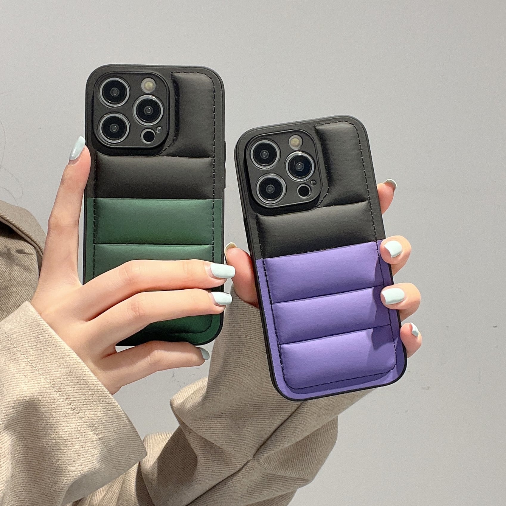 キルティング iPhone 16 15 14 13 12 11 ケース ツートンカラー おしゃれ 耐衝撃 人気 ダウンケース