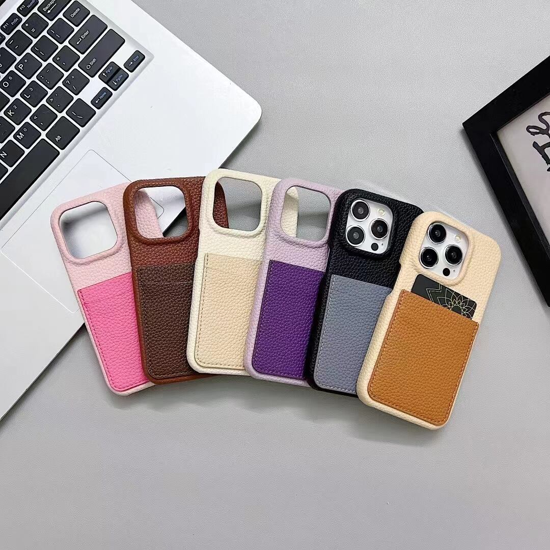 バイカラー レザー iPhone 15/14/13 ケース カード収納 背面ケース 大人可愛い
