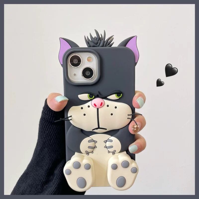 不機嫌な猫 iPhone 17 16 15 14 13 12 11 ケース 可愛い 立体 ルシファー スタンド対応 シリコンケース 耐衝撃 スマホケース