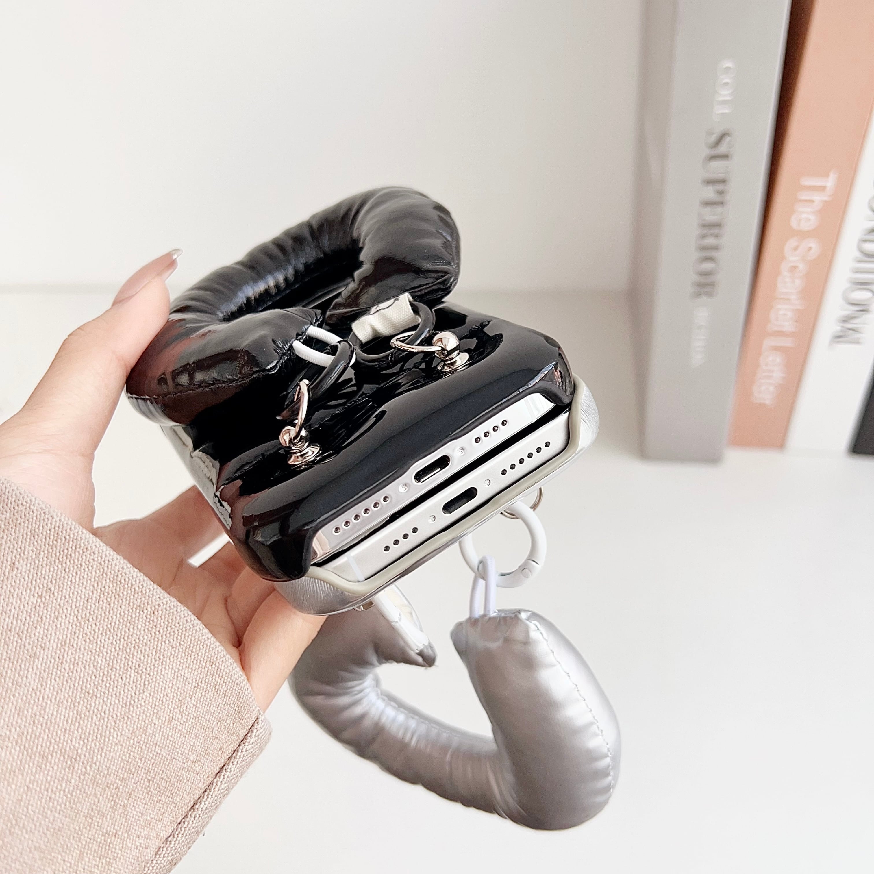【カジュアル可愛い♡光沢素材が上品な ダウン風 iPhoneケース】