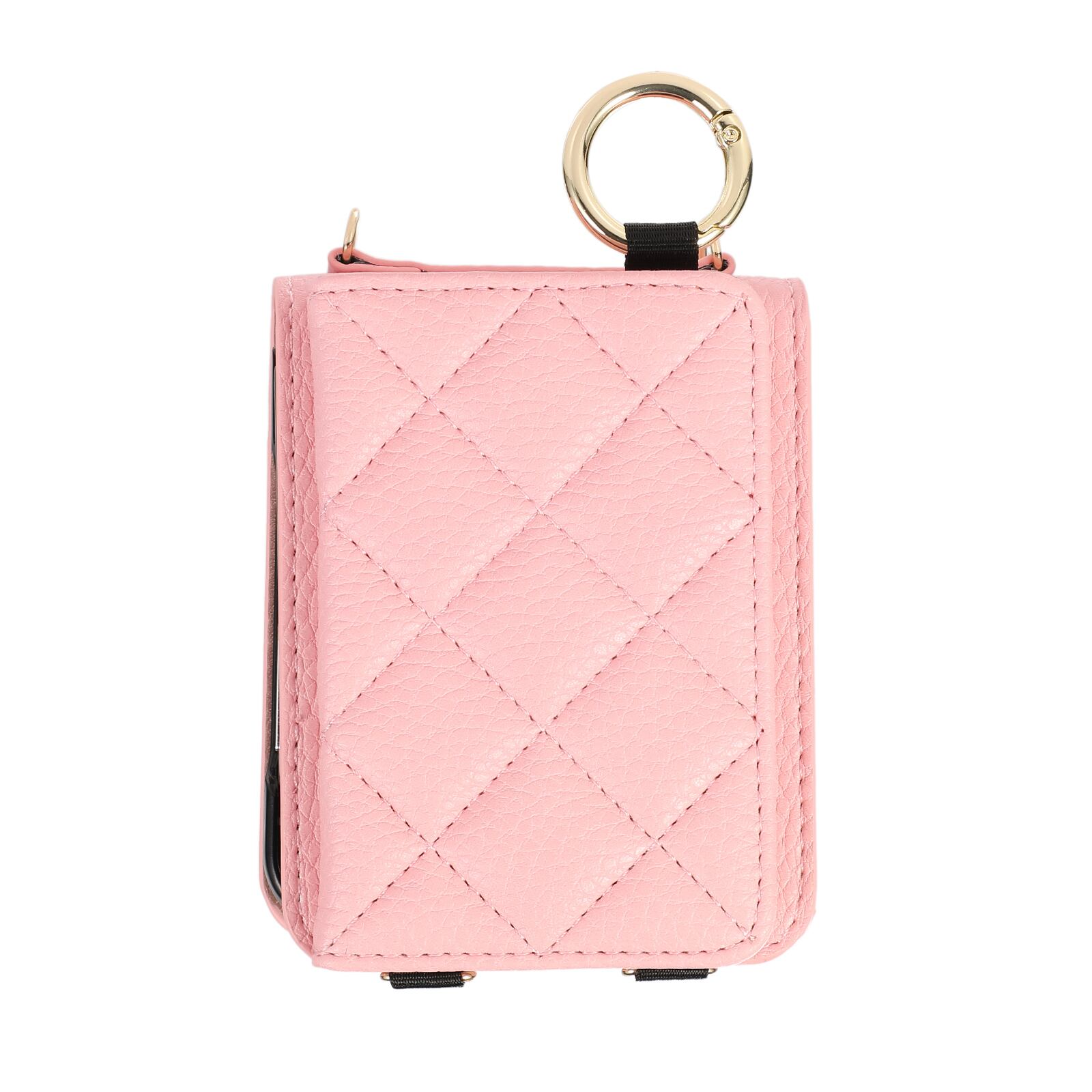 ミラー付き Galaxy Z Flip6/5/4/3 ケース ショルダー キルティング カード収納 リング付 ヒンジ保護 斜めがけ 格子 スマホショルダー