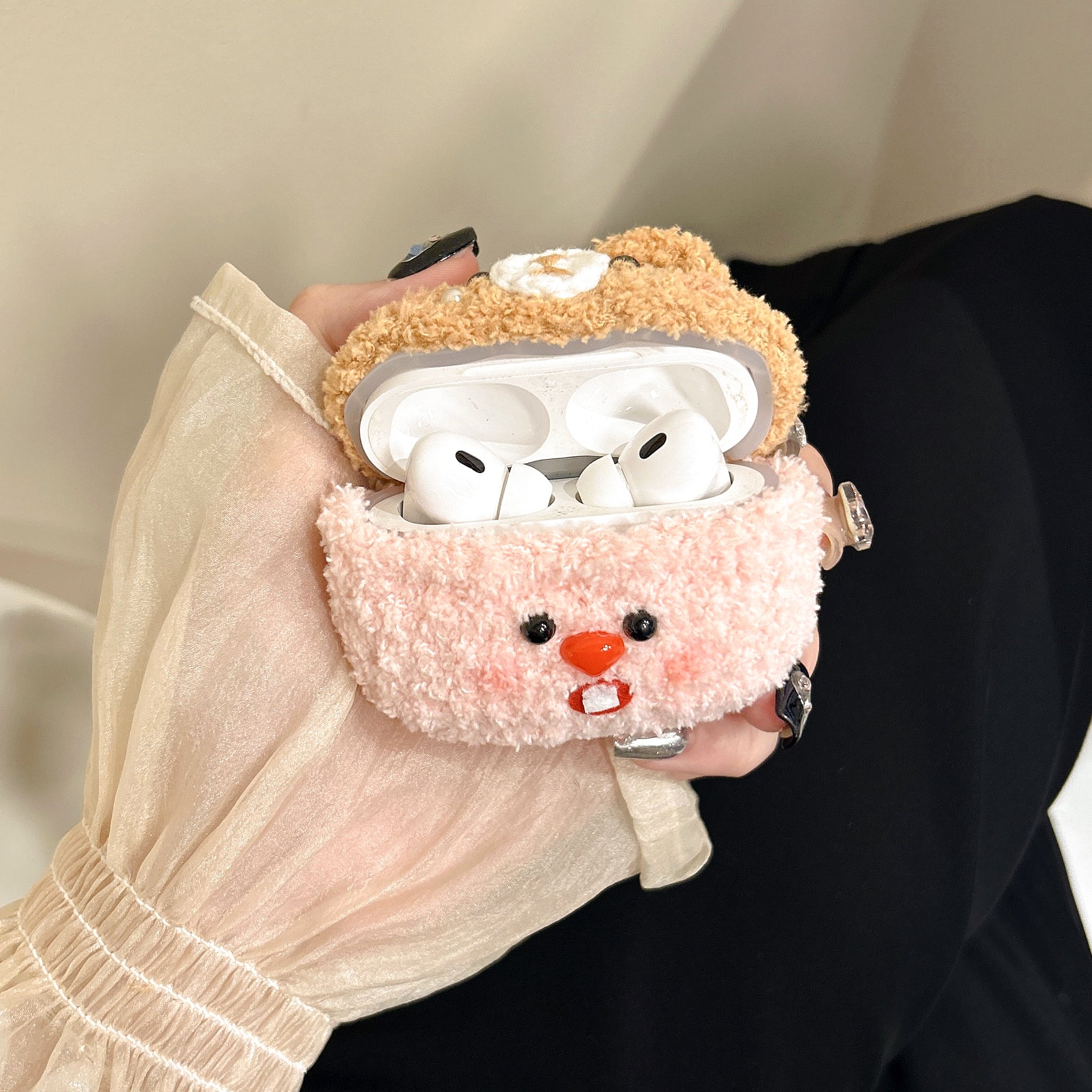 可愛い ベア帽子うさぎ airpodsケース ふわふわ かわいい AirPods Pro 第2/1世代 ケース AirPods第3世代 ケース