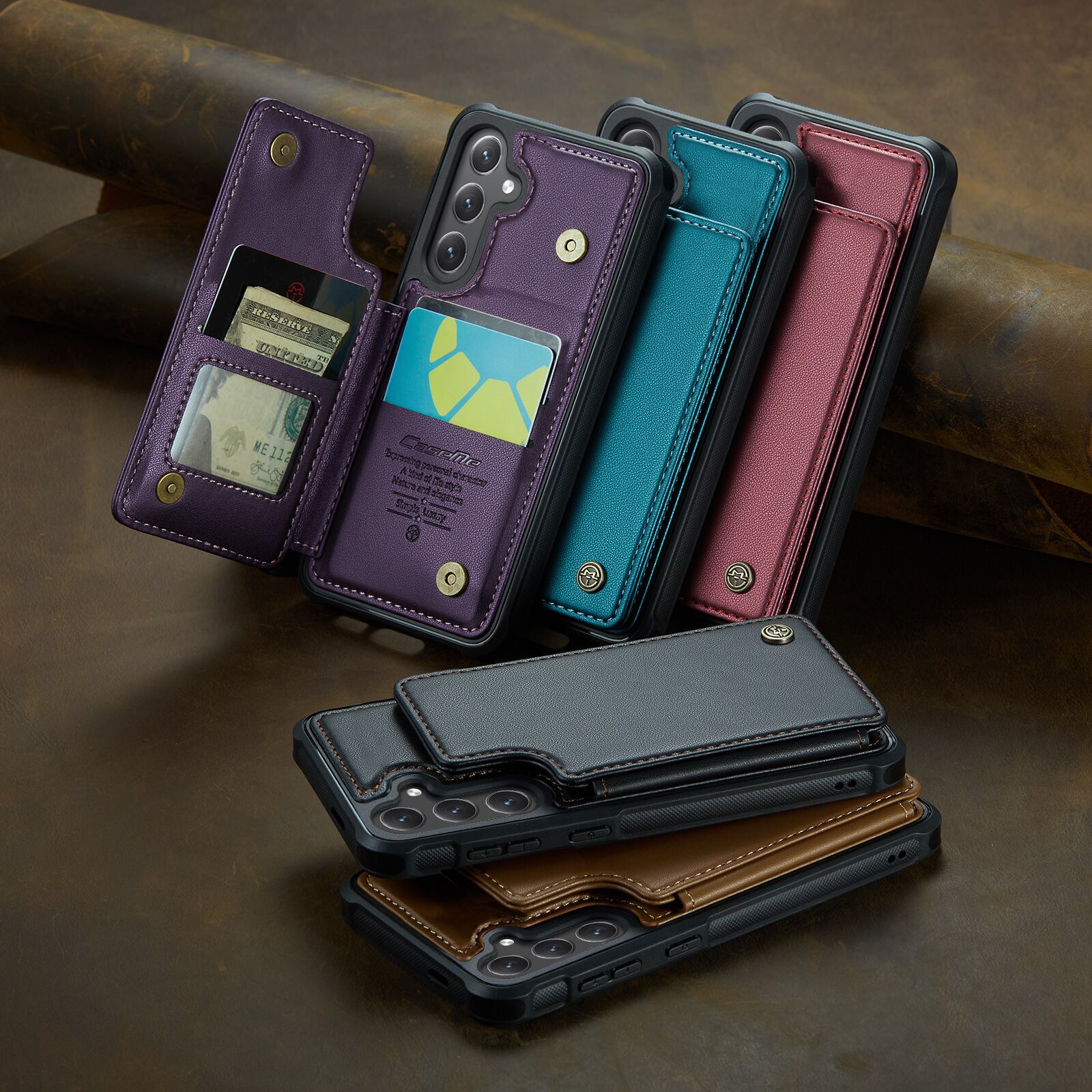 お手入れ簡単なPUレザーを使用した背面型Galaxyケース。