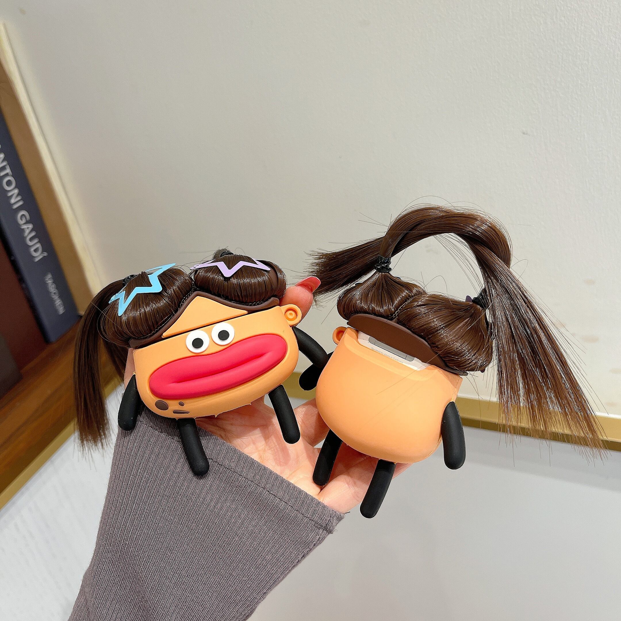 ロングヘア airpodsケース 可愛い カラビナ付き airpods pro2ケース おもしろ airpods3ケース airpods2ケース