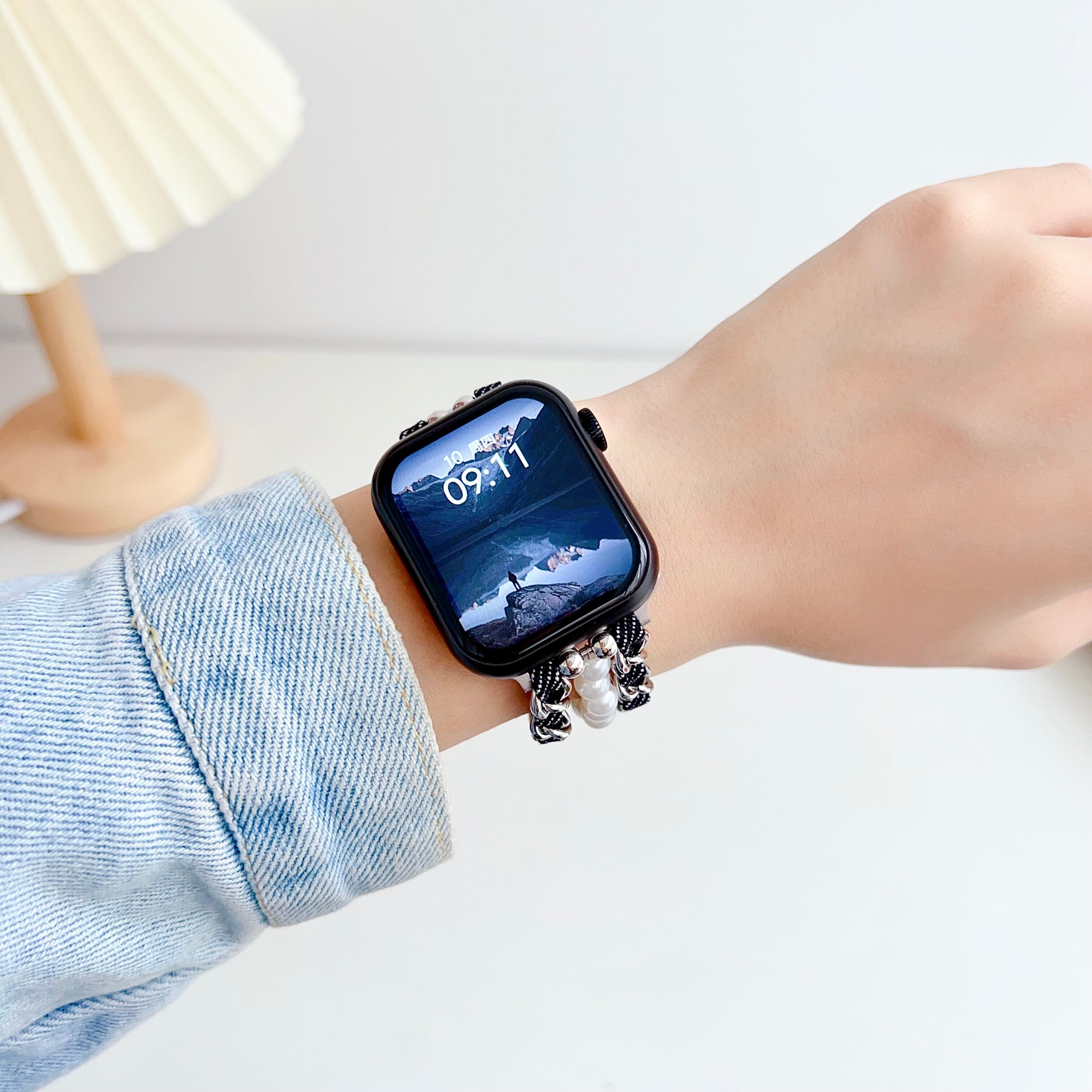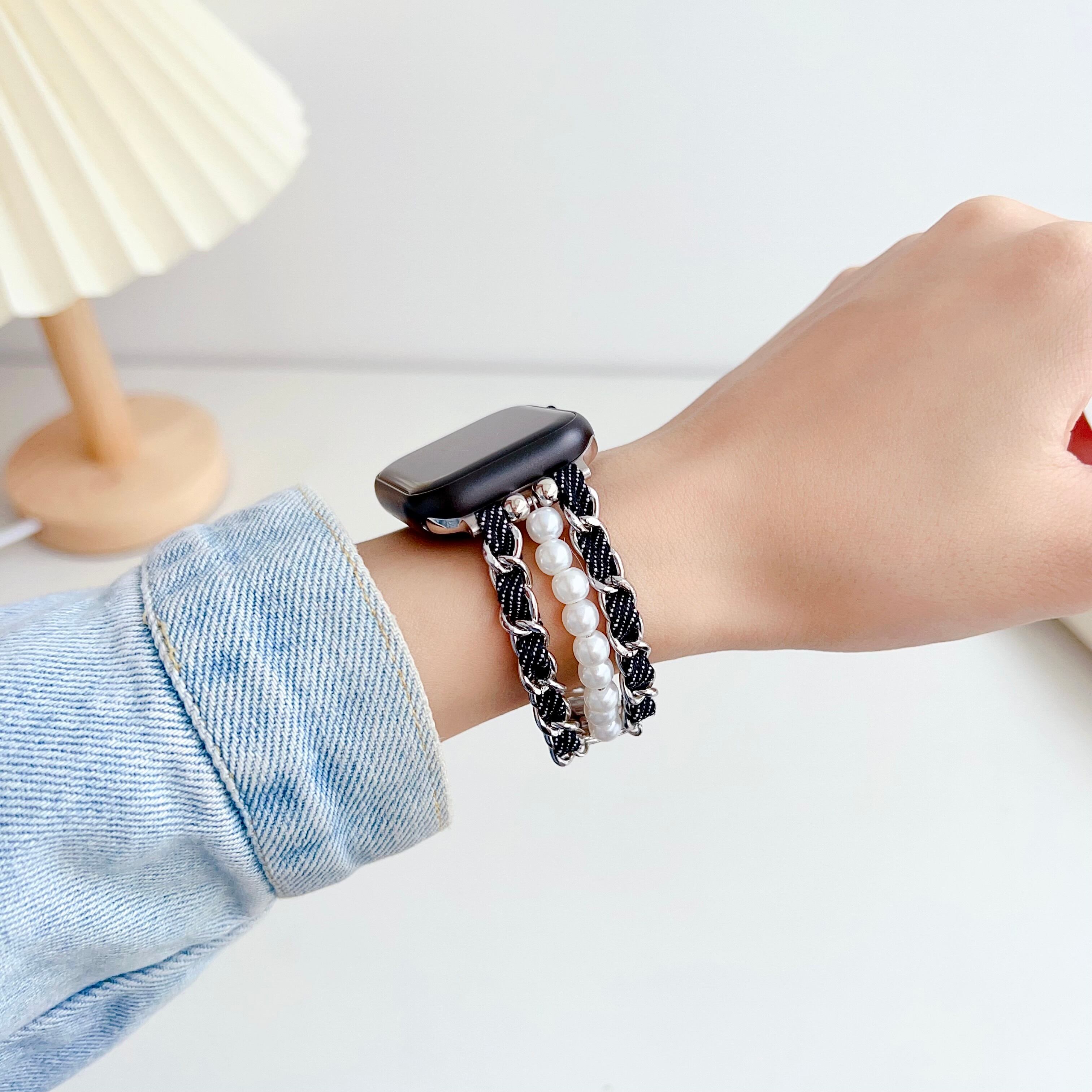 デニムチェーン&パール Apple Watch バンド おしゃれ アップルウォッチバンド かわいい 交換ベルト