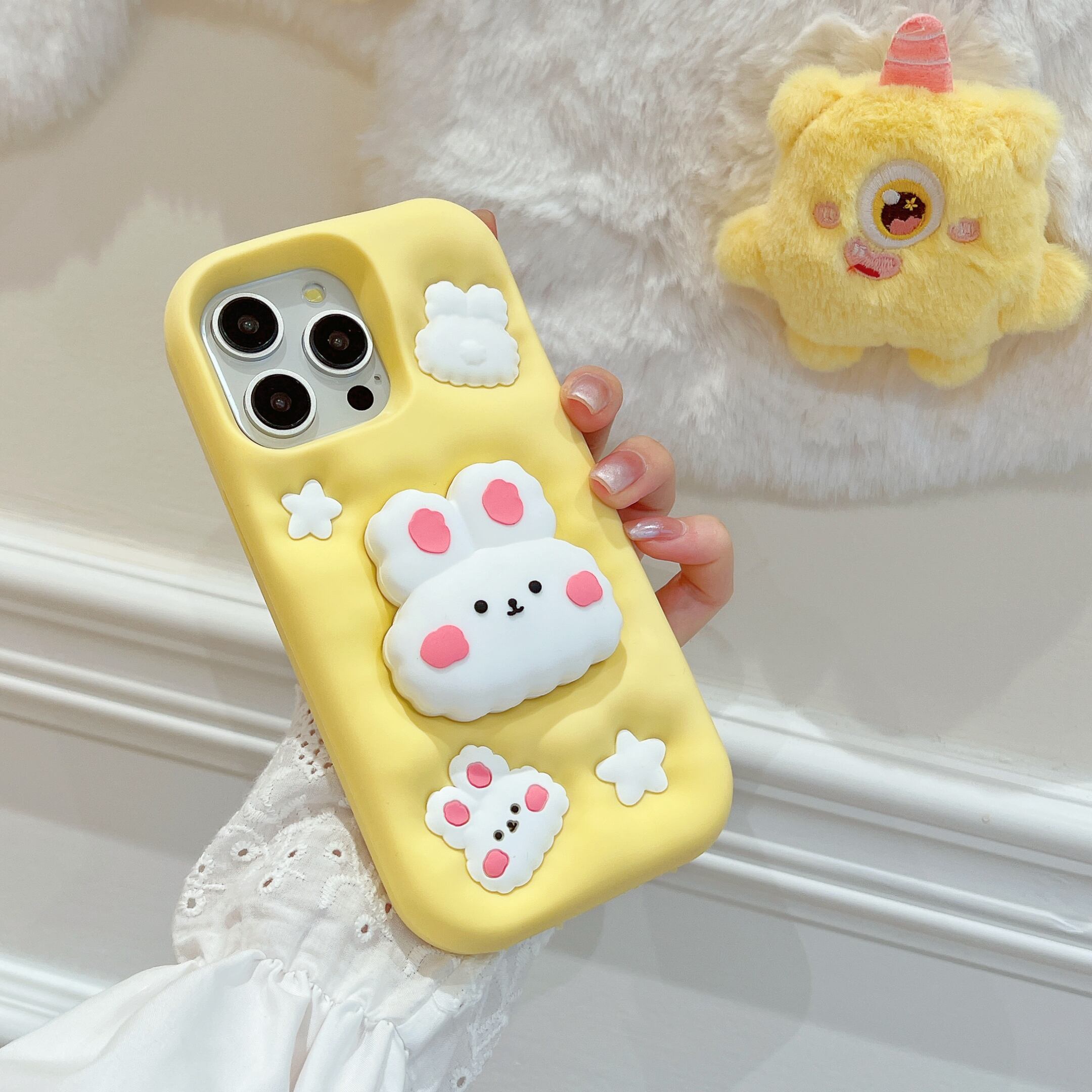 もちもちウサギ iPhone 16 15 14 13 12 11 ケース 可愛い シリコンケース 動物 スタンド機能 耐衝撃 スマホカバー