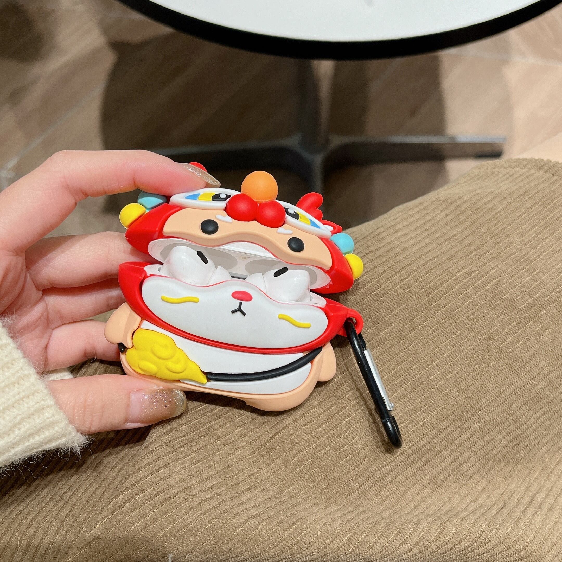 獅子舞 コーギー AirPods Pro 第2/1世代 ケース カラビナ付き AirPods第3世代ケース かわいい airpodsケース おしゃれ