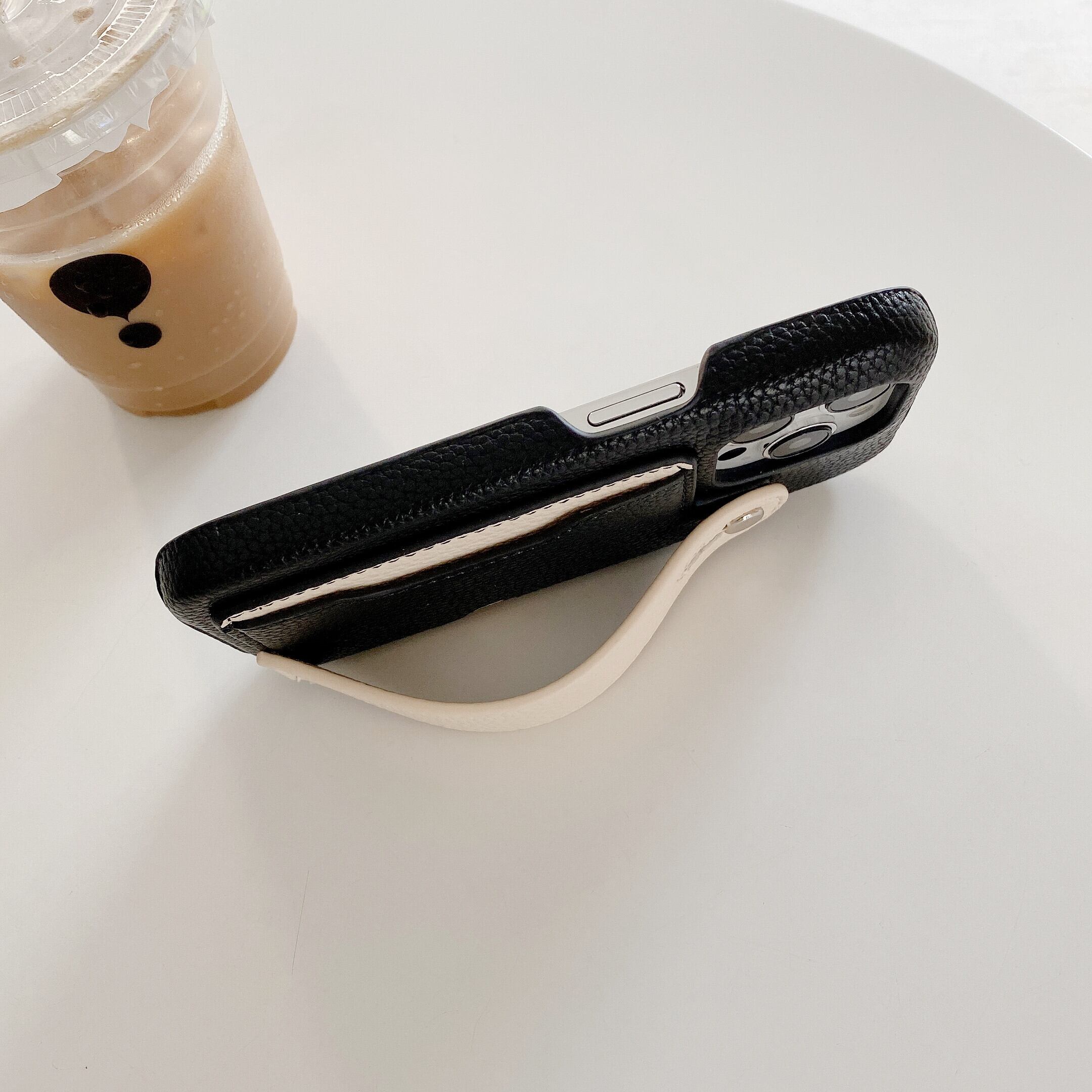 バンド付き iphone 15 14 13 12 11 ケース バイカラー カード収納 背面ケース スタンド機能 アイフォンケース