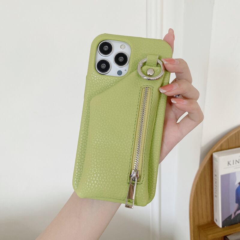 ファスナーポケット iphone15 14 13 12 11 ケース リング付き AirPods収納対応 小銭いれ アイフォンケース