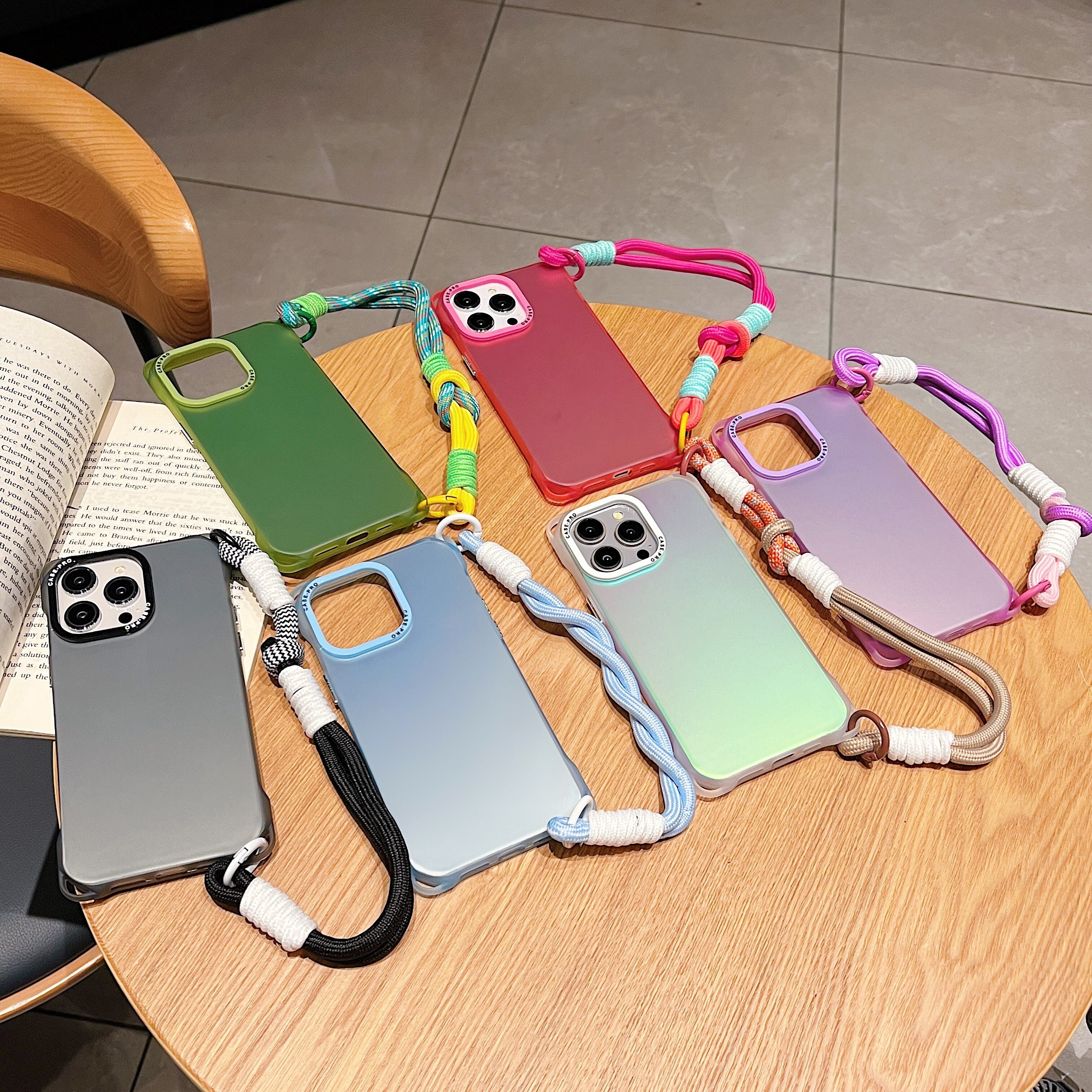 ストラップ付き マット調 iphone15 14 13 12 11 ケース 四隅ストラップホール TPU 耐衝撃 アイフォンケース カラーケース