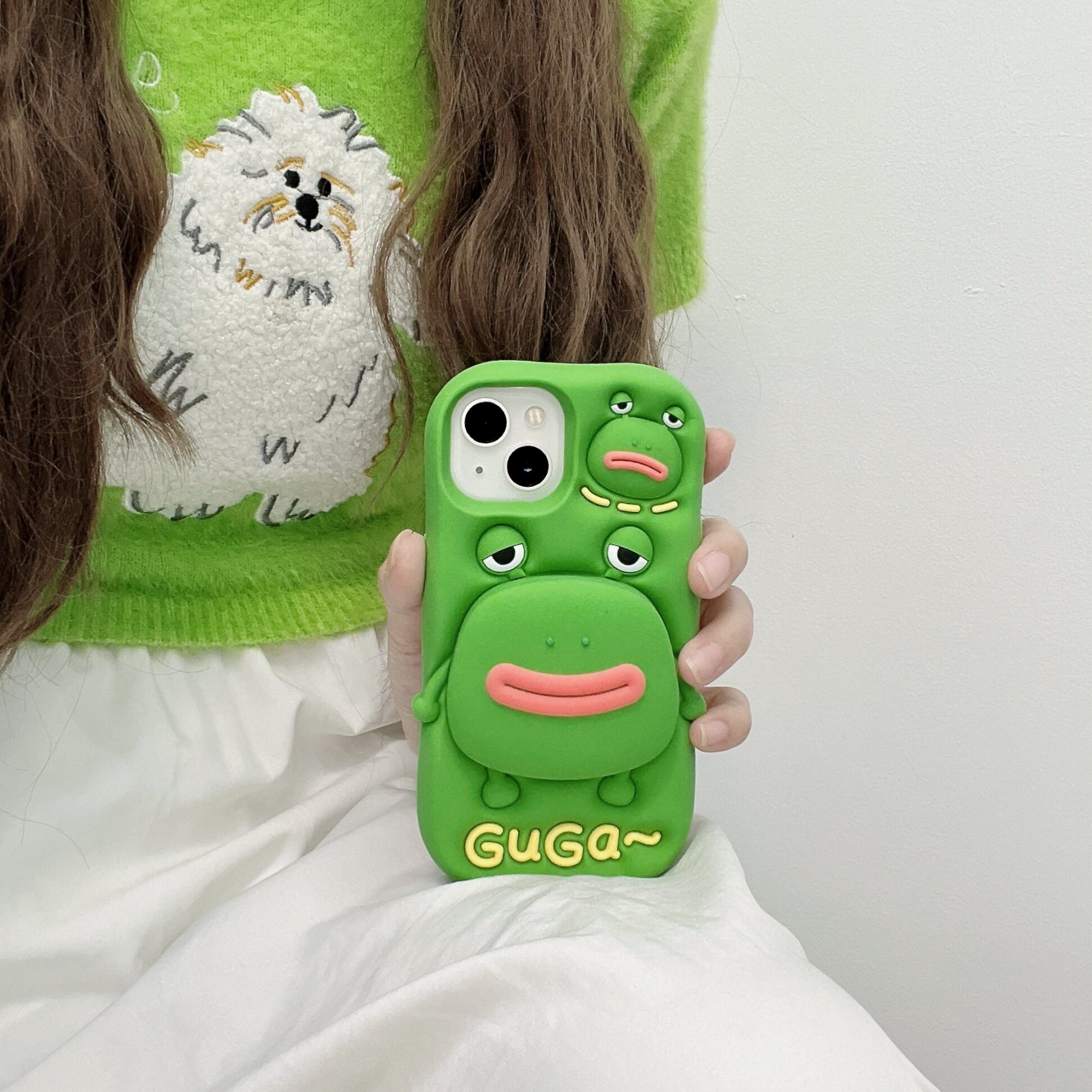 かわいい カエル iPhone 17 16 15 14 13 12 11 ケース 可愛い 蛙 スタンド機能 シリコンケース 耐衝撃 スマホカバー