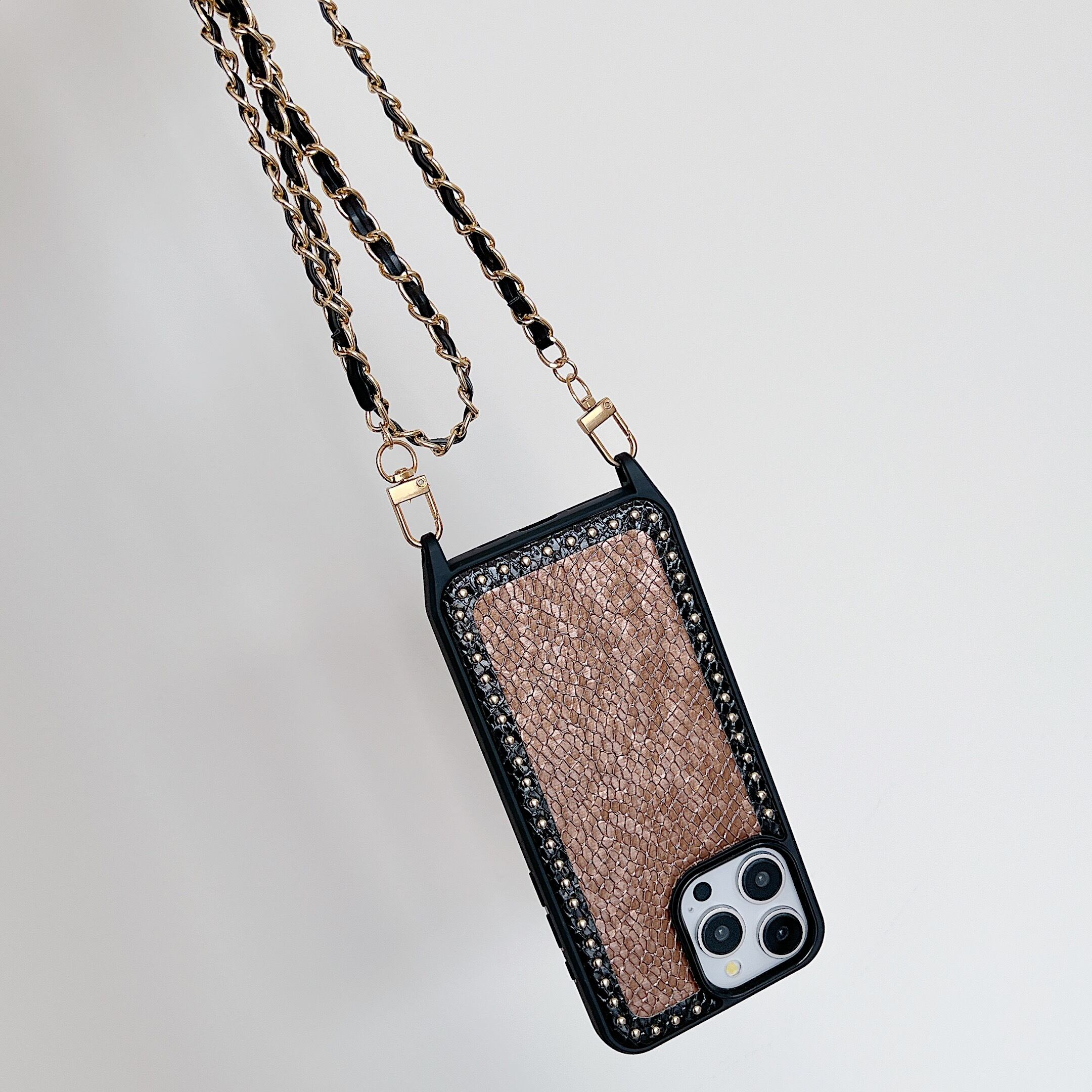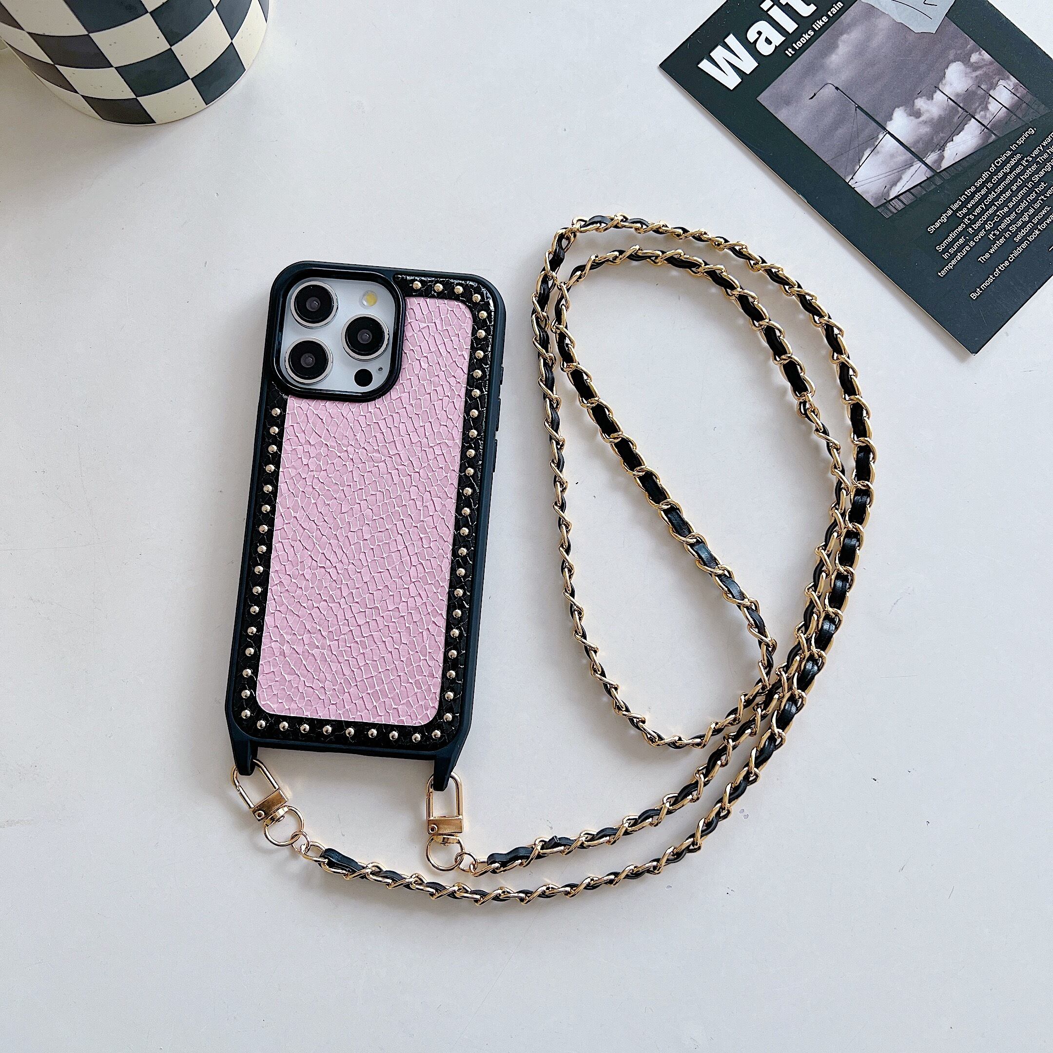 スタッズ iPhone15 14 13 12 11 ケース ショルダー レザーチェーン 斜めがけ ストラップ おしゃれ アニマル柄