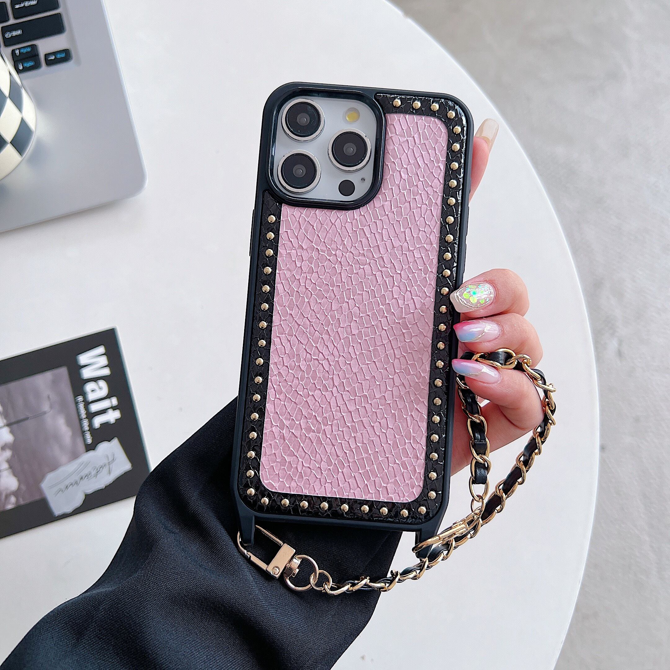 スタッズ iPhone15 14 13 12 11 ケース レザーチェーン ハンドストラップ おしゃれ アニマル柄