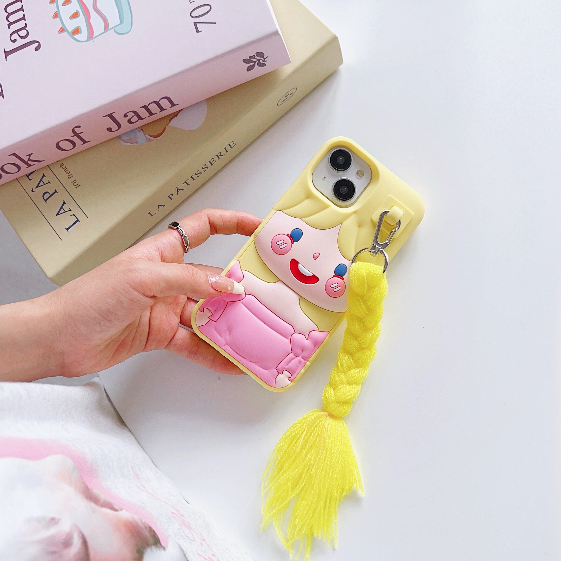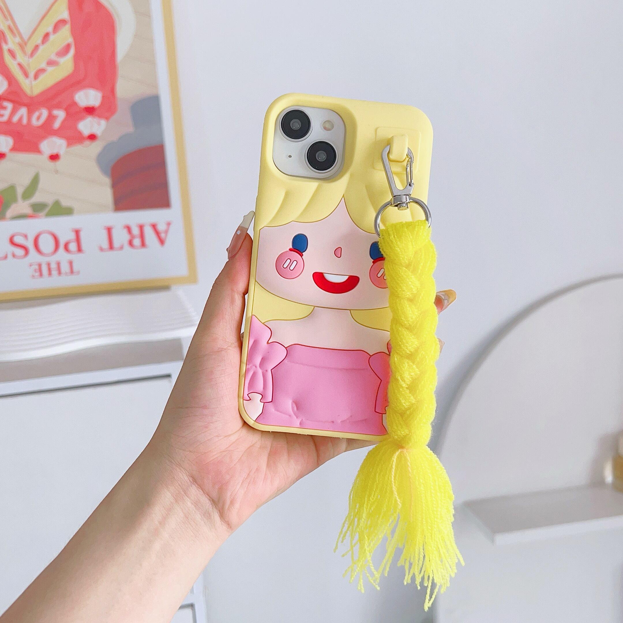三つ編みガール iPhone15 14 13 12 11 ケース シリコン 可愛い キャラクター アイフォンケース 耐衝撃