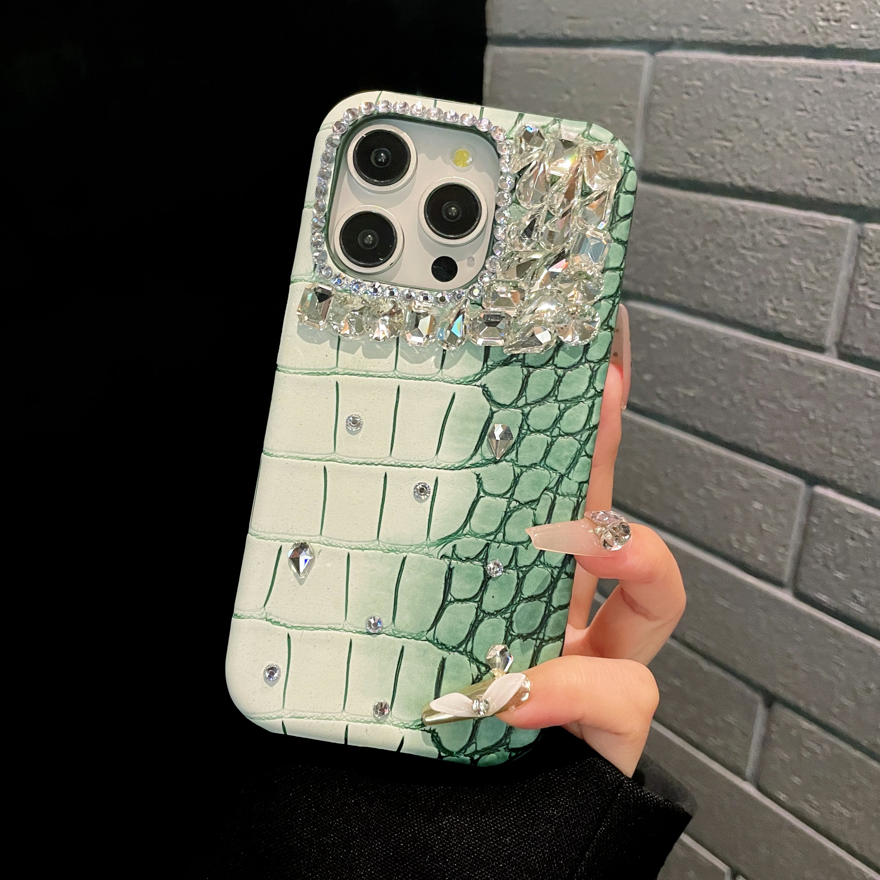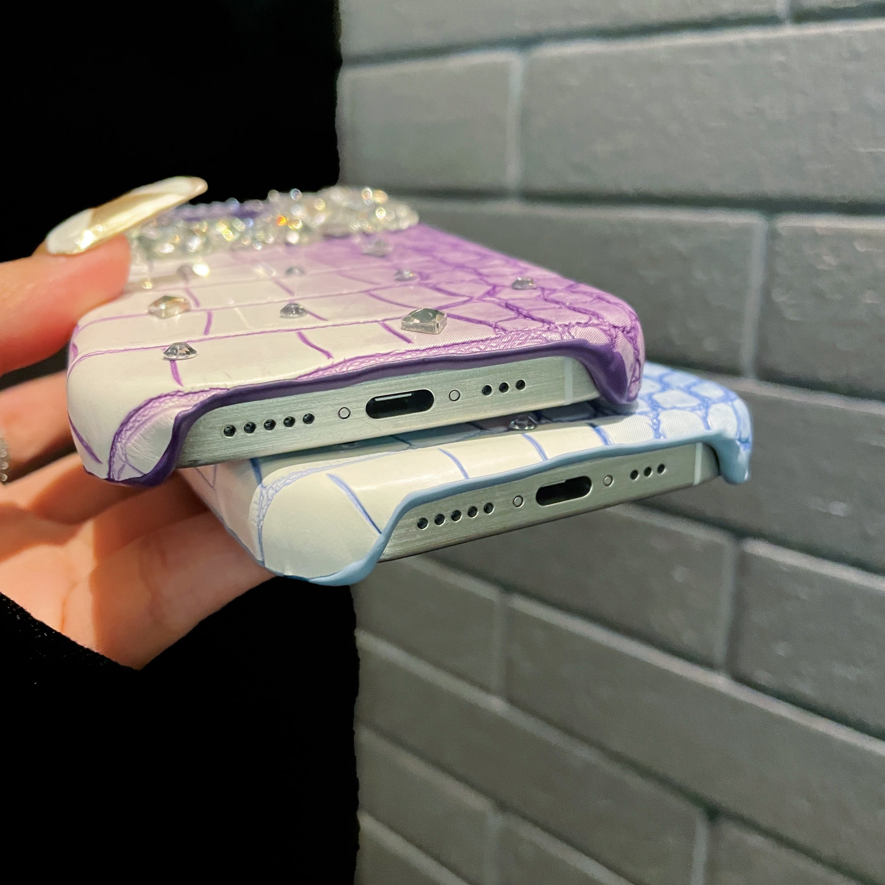 キラキラ 型押し iphone 15 14 13 12 11 ケース おしゃれ puレザー 背面ケース ダイヤ