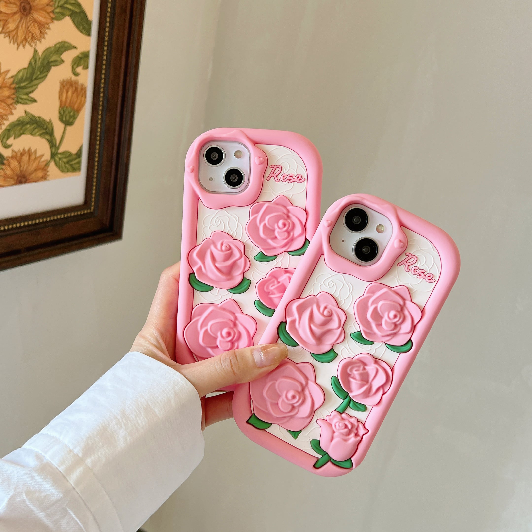 ローズ iPhone15 14 13 12 11 ケース シリコン 可愛い 立体 フラワー アイフォンケース 耐衝撃