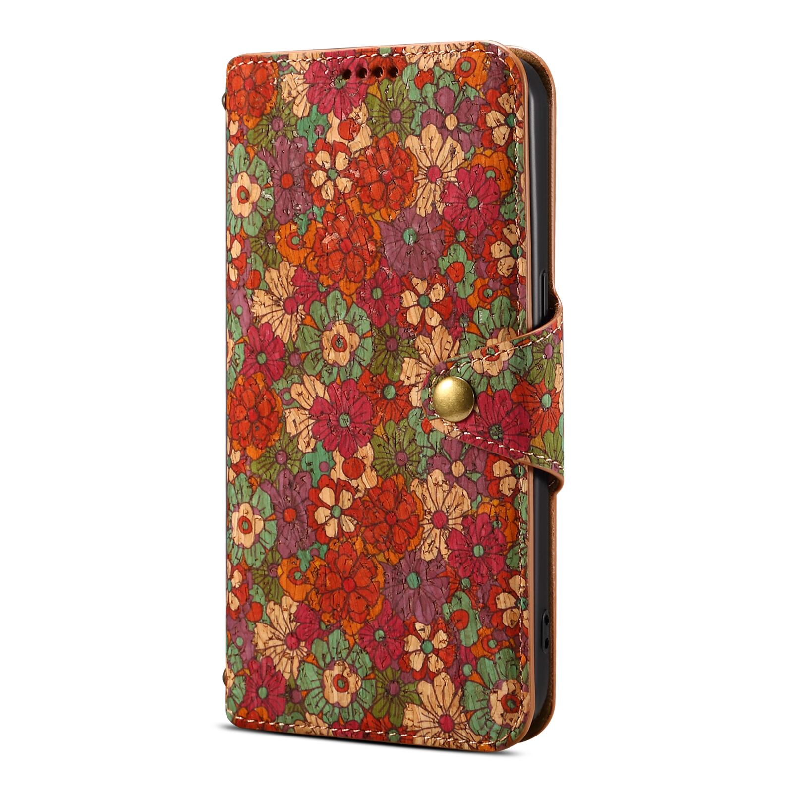 コルク素材 iPhone 17 16 15 14 13 12 ケース 手帳型 花柄 ショルダー付き カード収納 おしゃれ レザーチェーン ナチュラル エコ