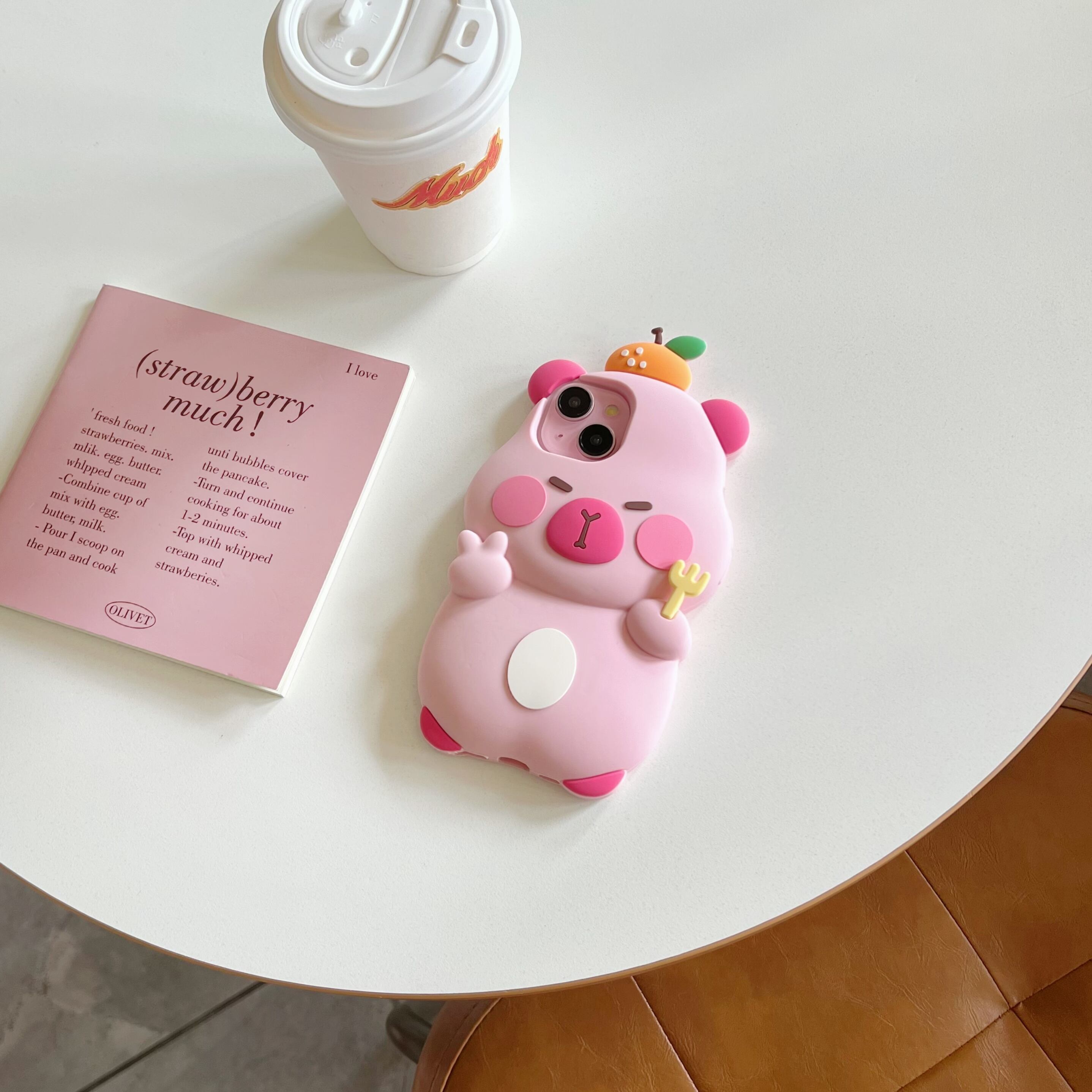 ピンクカピバラ iPhone15 14 13 12 11 ケース おもしろ シリコンケース 耐衝撃 立体 アイフォンケース かわいい