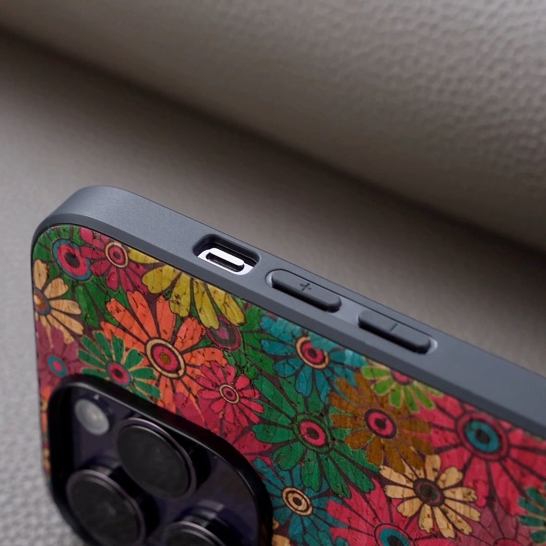 コルク素材 × フラワーデザイン 背面型 iPhone ケース