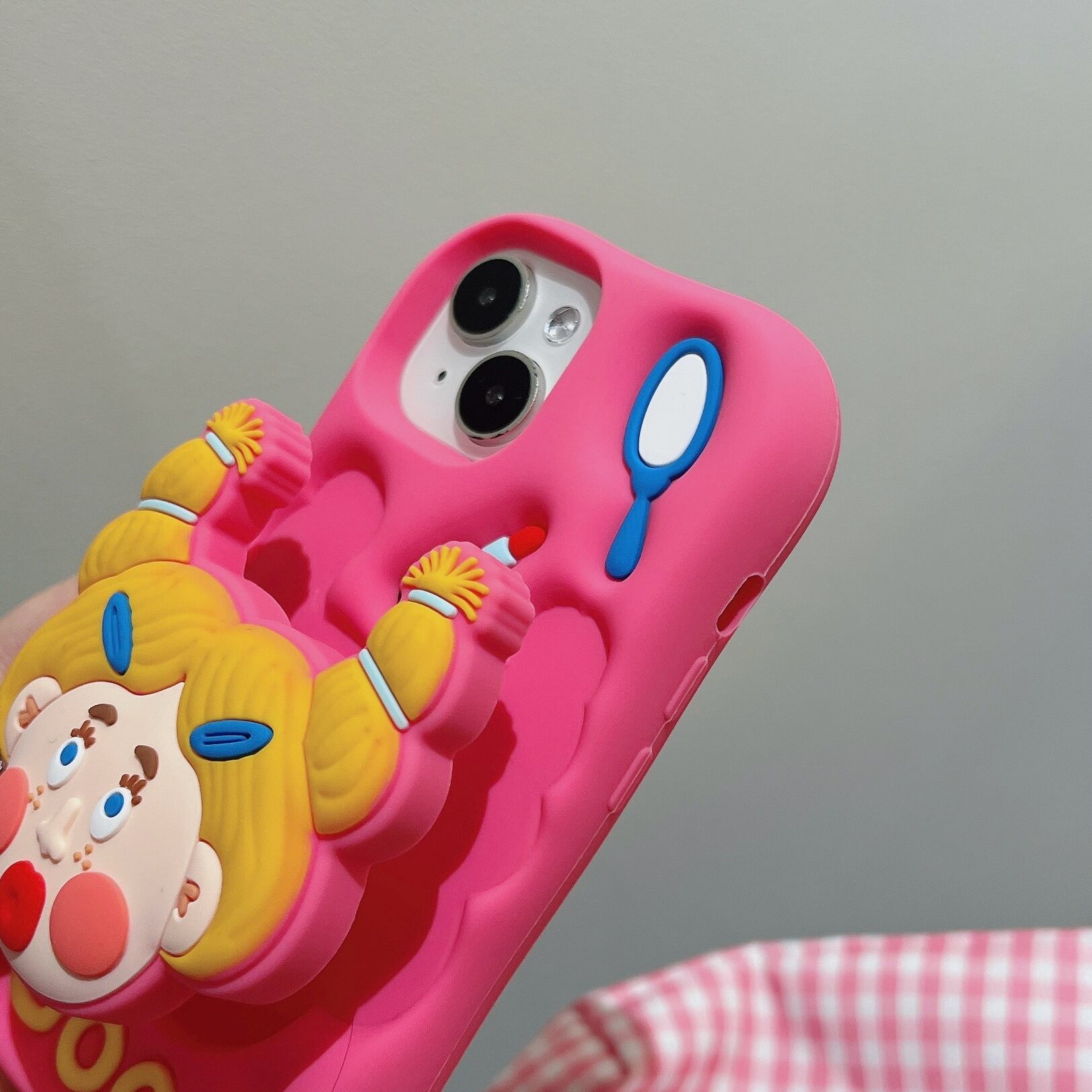 メイクアップ iPhone16 15 14 13 12 11 ケース 可愛い スタンド機能 シリコンケース 耐衝撃 アイフォンケース おもしろ
