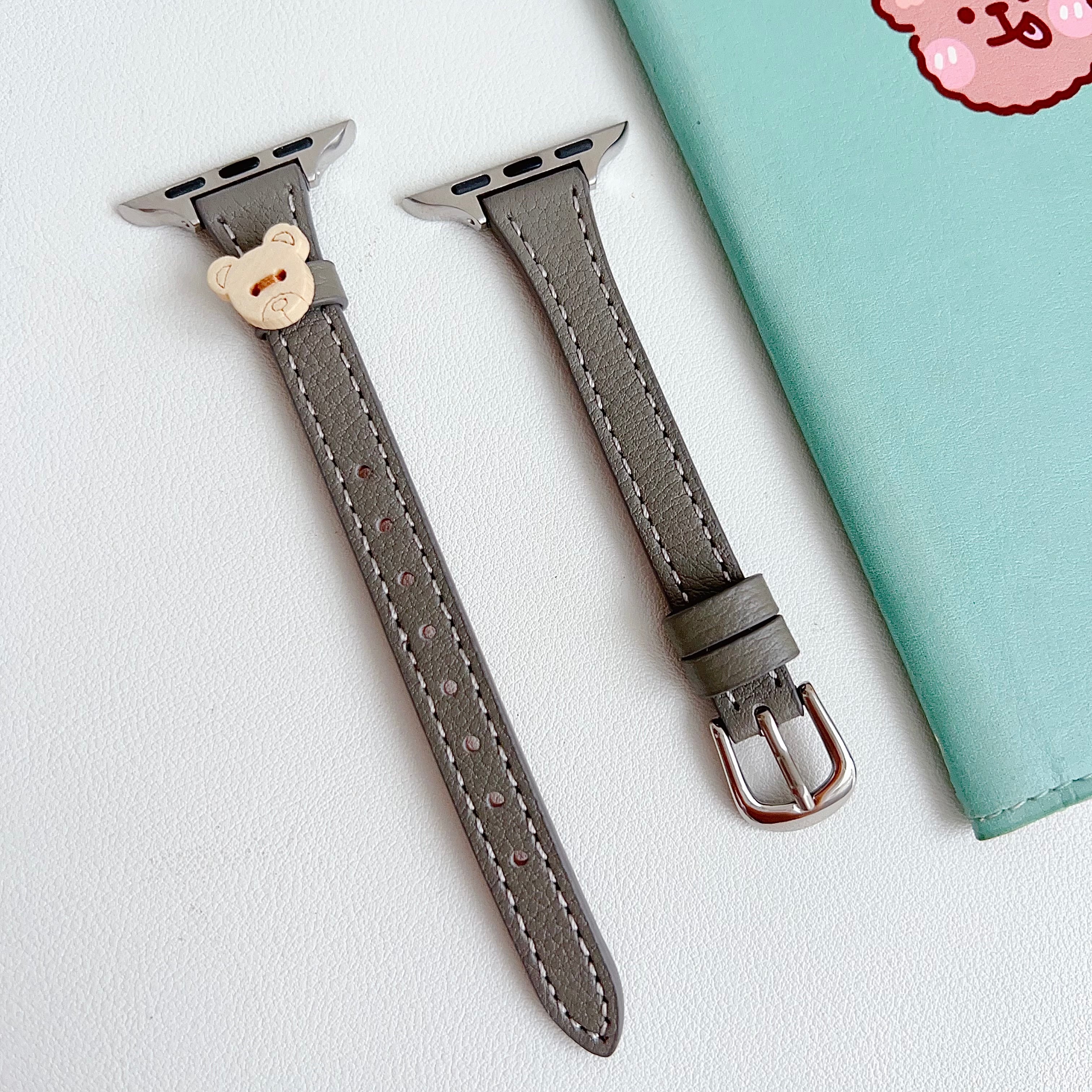 くま柄 本革 Apple Watch バンド かわいい レザーベルト Series 10 9 8 7 6 SE対応 レディース アップルウォッチ ベルト