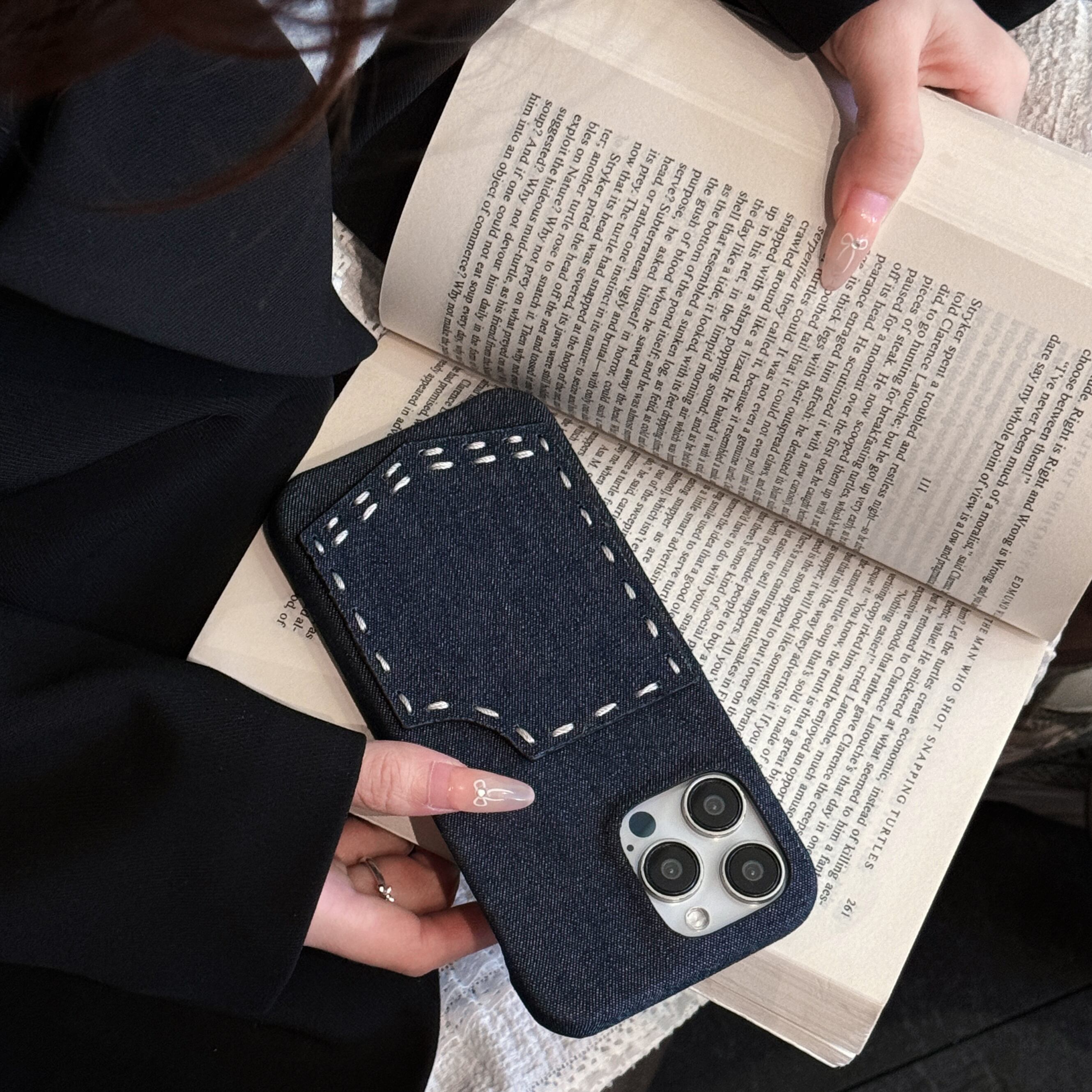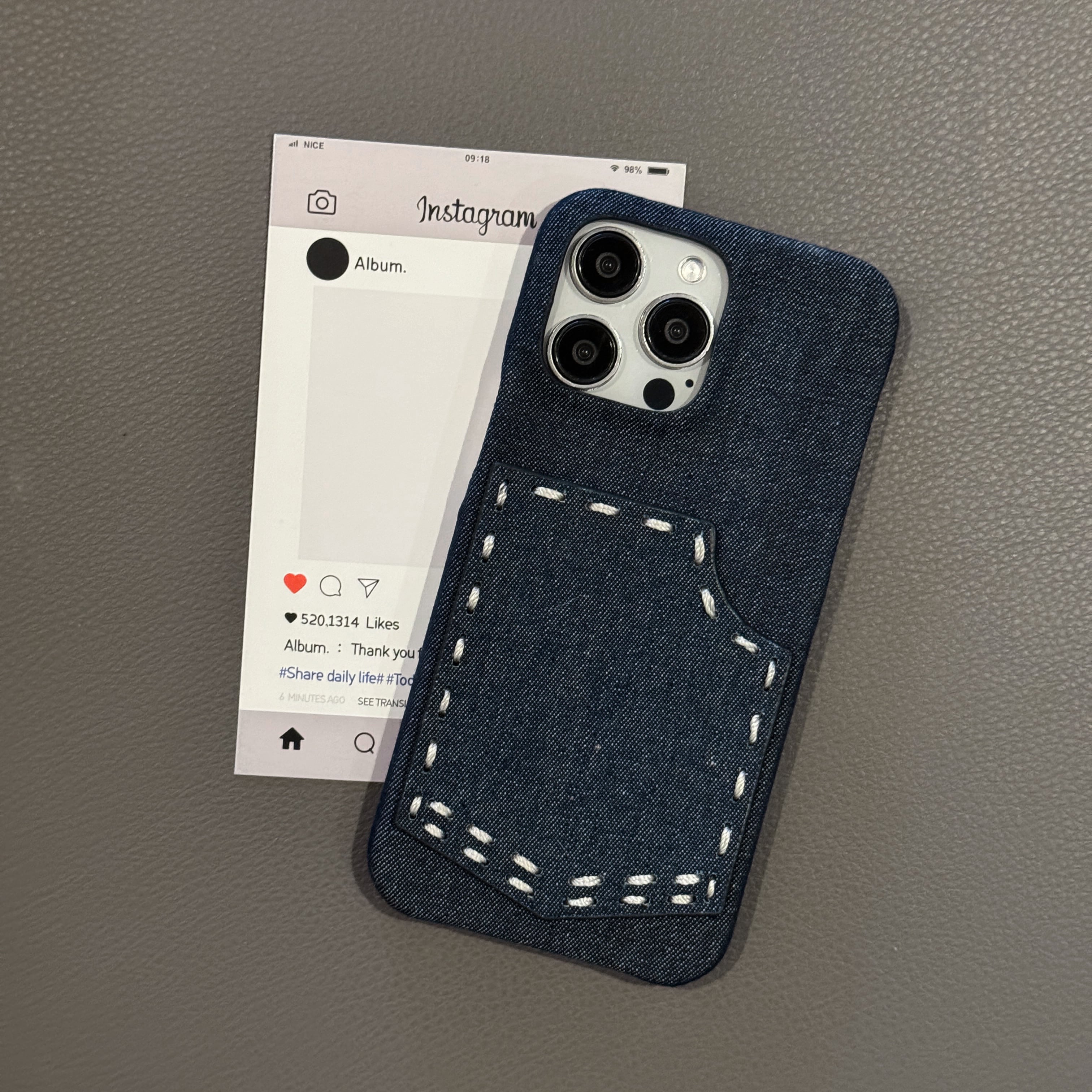 デニム柄 iphone 15 14 13 ケース ステッチ カード収納 アイフォンケース レザーケース