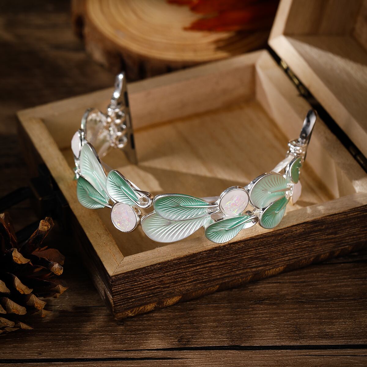 羽根模様パーツとゴムで作られたこのApple Watch専用バンドは、