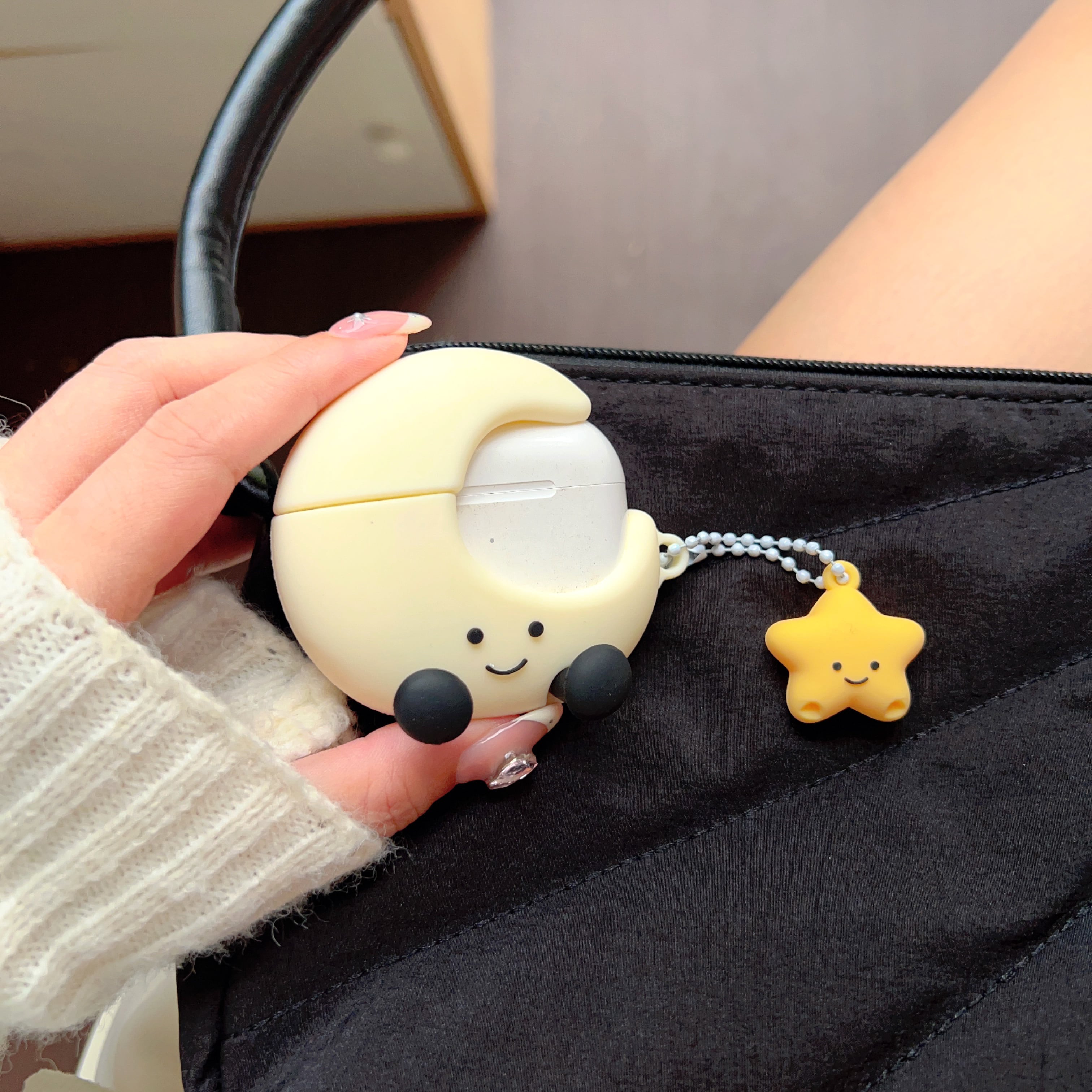 月と星のAirPodsケース 可愛い シリコン 韓国風 AirPods Pro2ケース おしゃれ AirPods3ケース 星チャーム付き