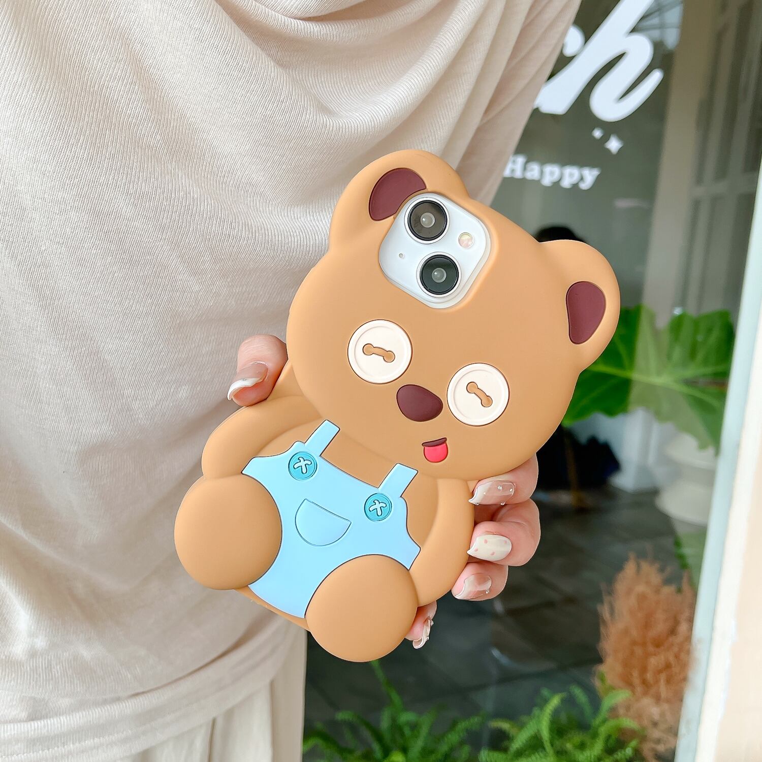 ボタンベア iPhone 15 14 13 12 11 ケース 可愛い くま柄 シリコンケース 耐衝撃 立体 クマ スマホカバー