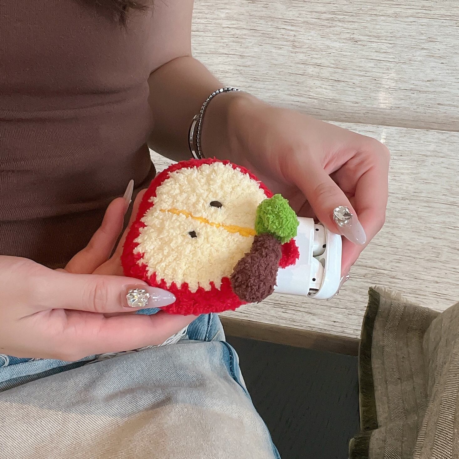 もこもこ airpods4 収納ポーチ りんご airpods pro2 ケース airpods第4世代 AirPods3 汎用 小物収納 ミニポーチ ふわふわ 可愛い