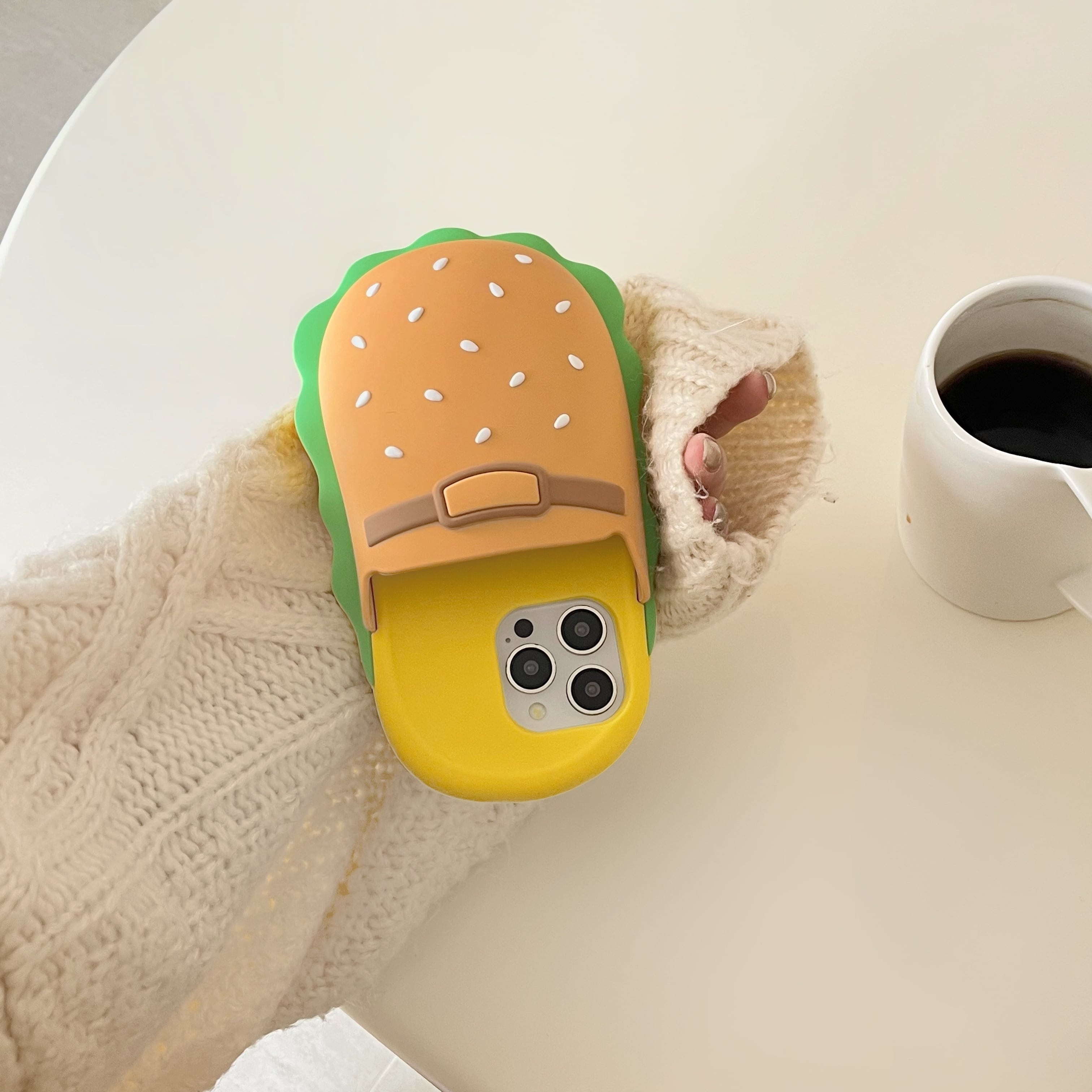 ハンバーガー サンダル iPhone16 15 14 13 ケース 可愛い シリコンケース 耐衝撃 立体 アイフォンケース