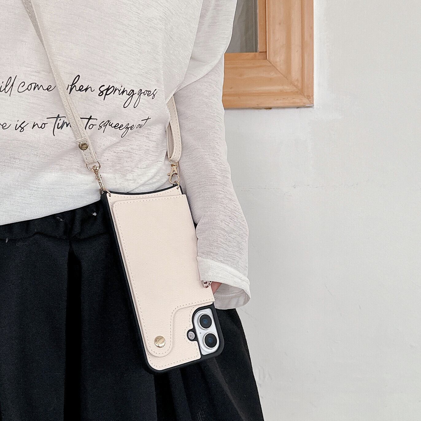 ミラー付き iphone16 15 14 13 12 11 ケース ショルダー ストラップ おしゃれ カード収納 スマホケース 斜めがけ レディース