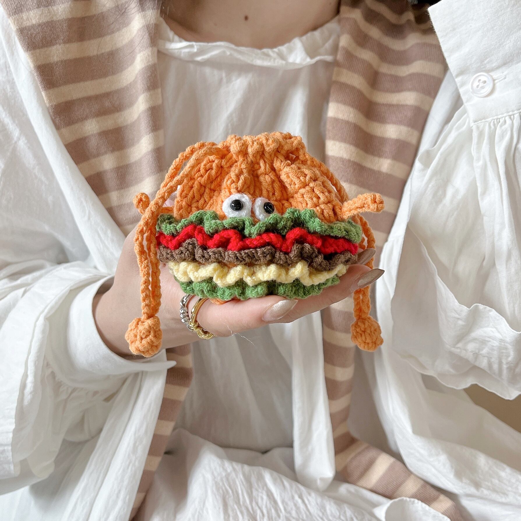 ハンバーガー airpods 収納ポーチ 編み 可愛い airpods pro2 ミニポーチ airpods第4世代 AirPods3 ケース