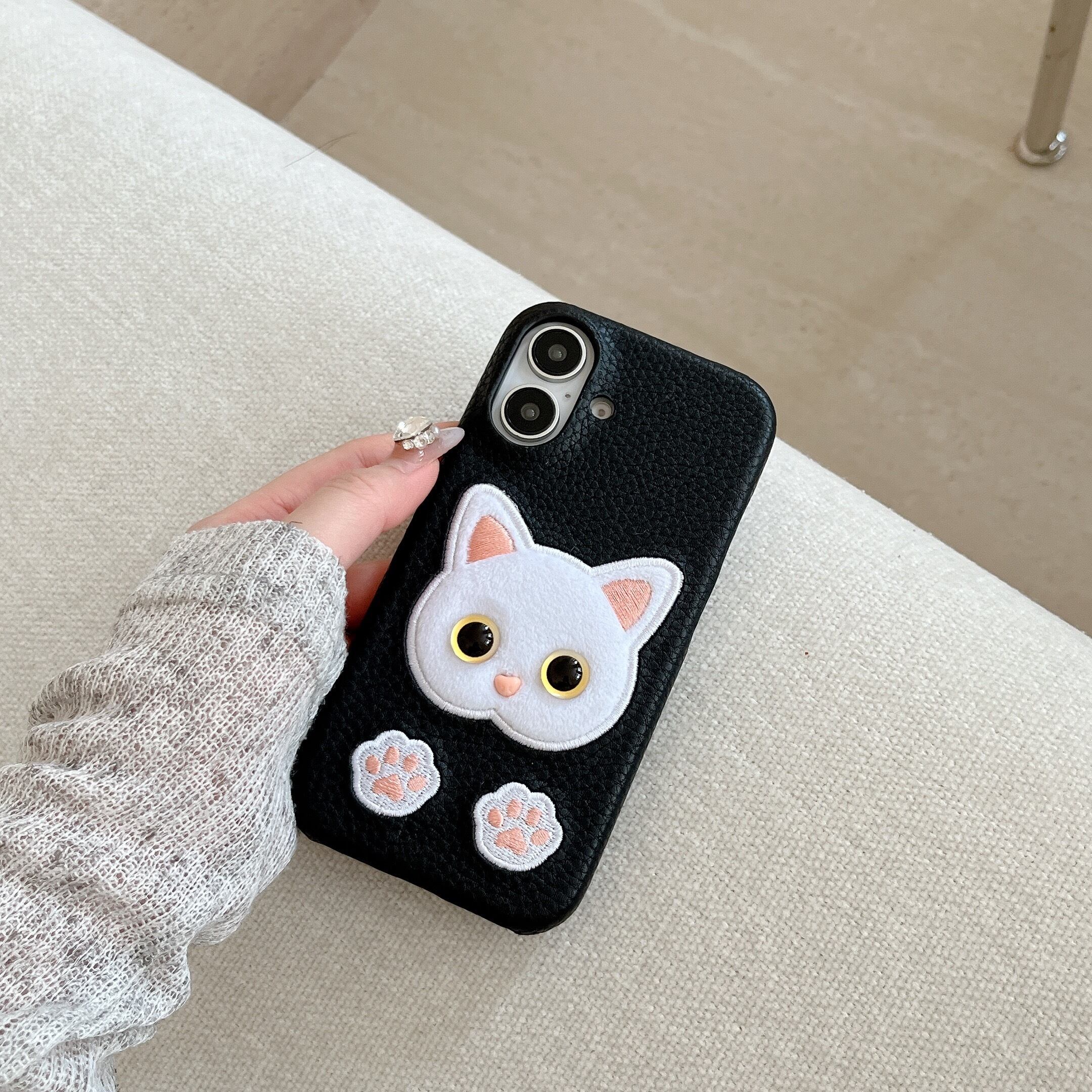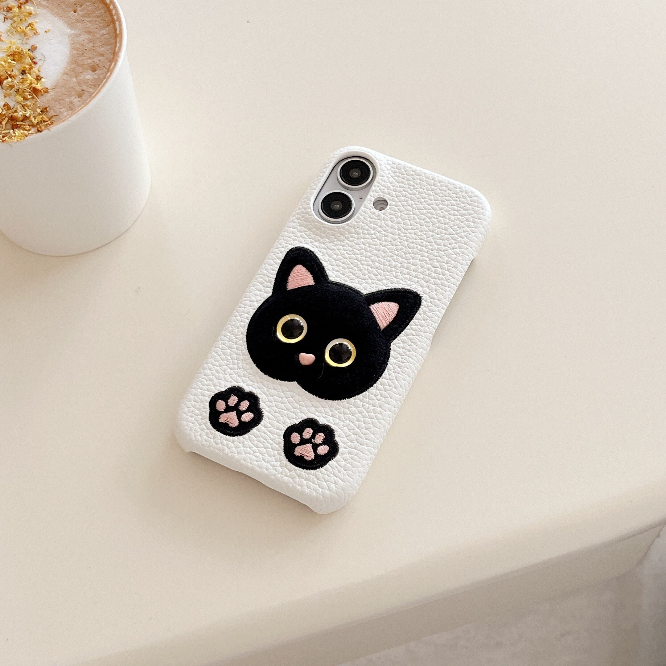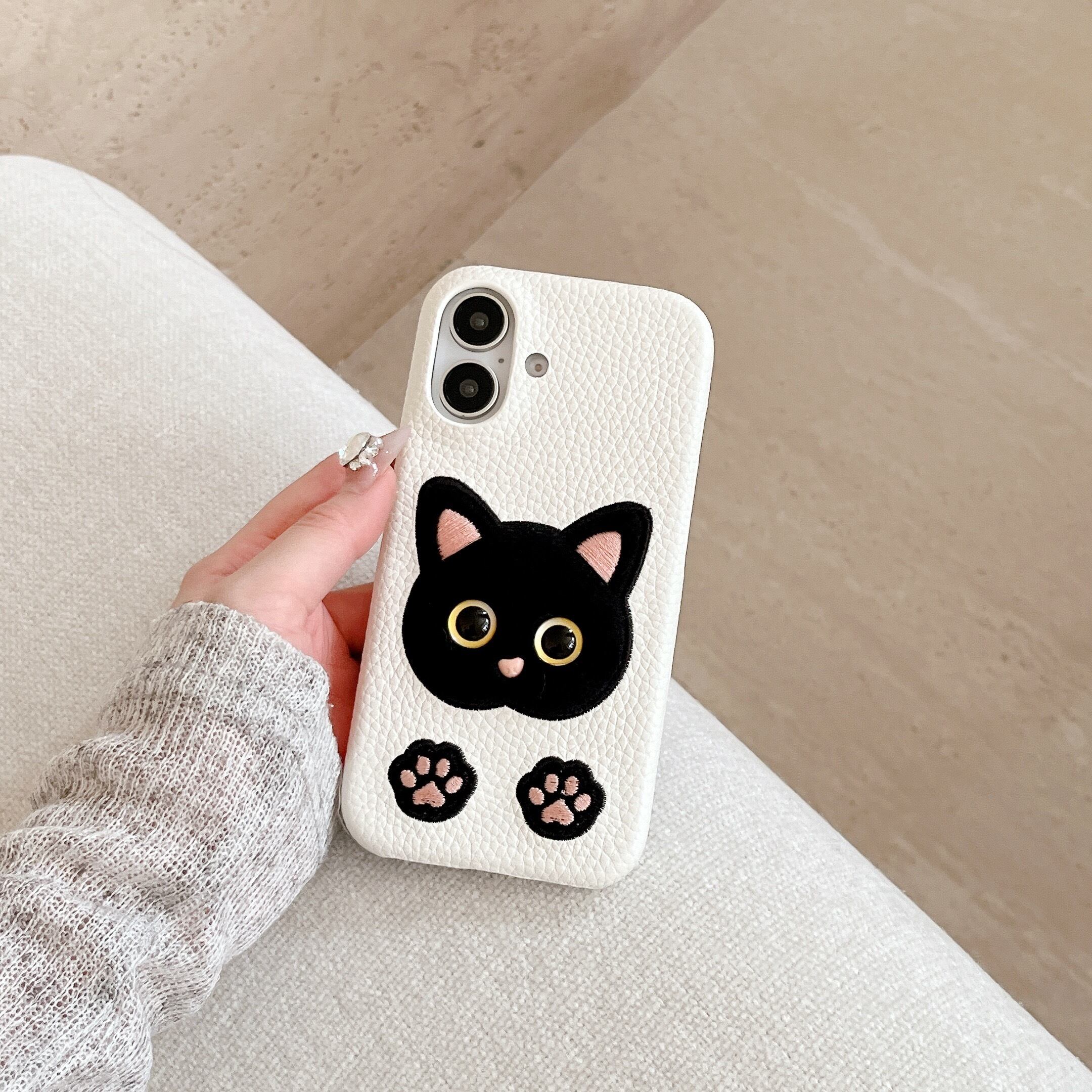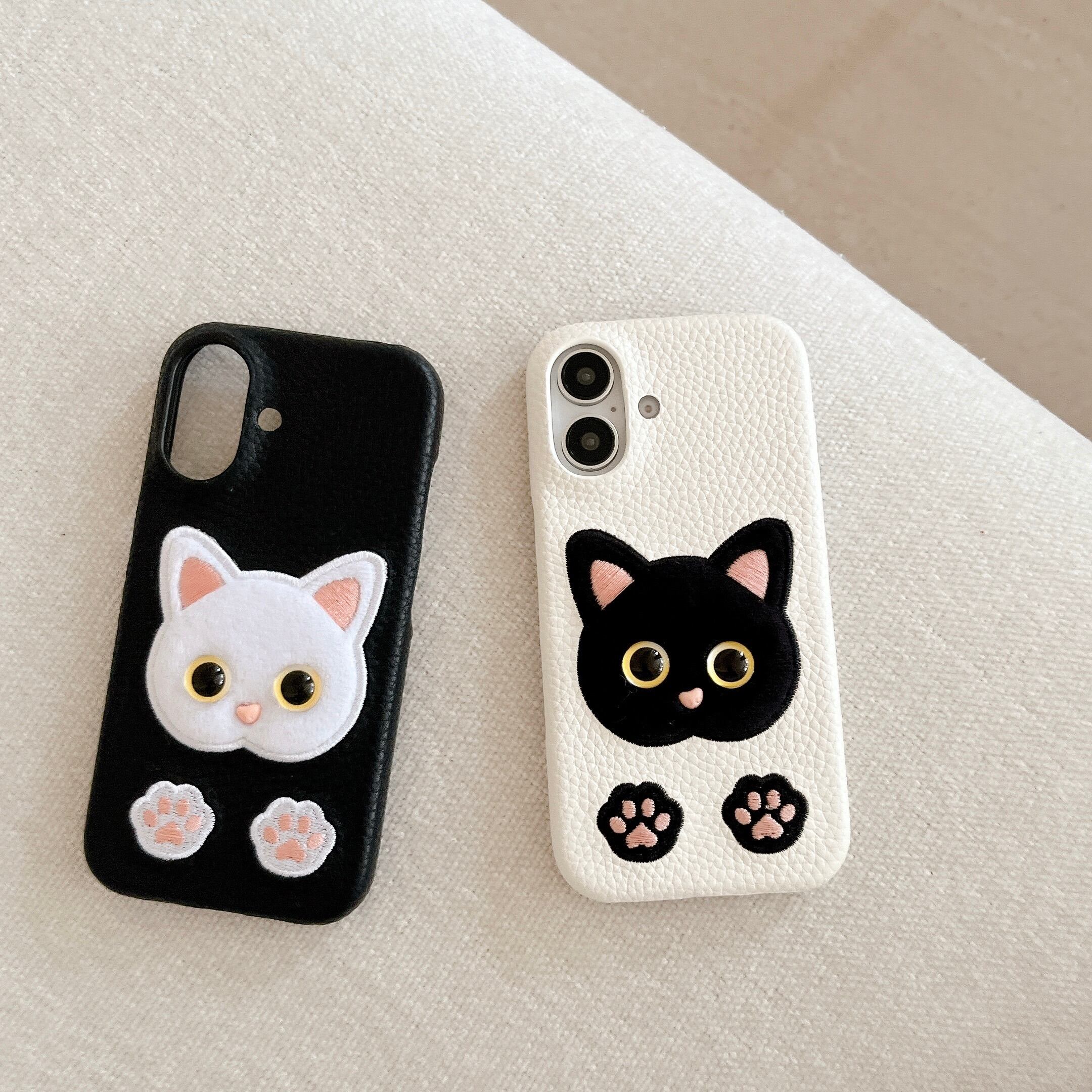 動物刺繍 猫 iphone 16 15 14 13 12 ケース 可愛い ネコ キャット 肉球 スマホケース おしゃれ puレザー