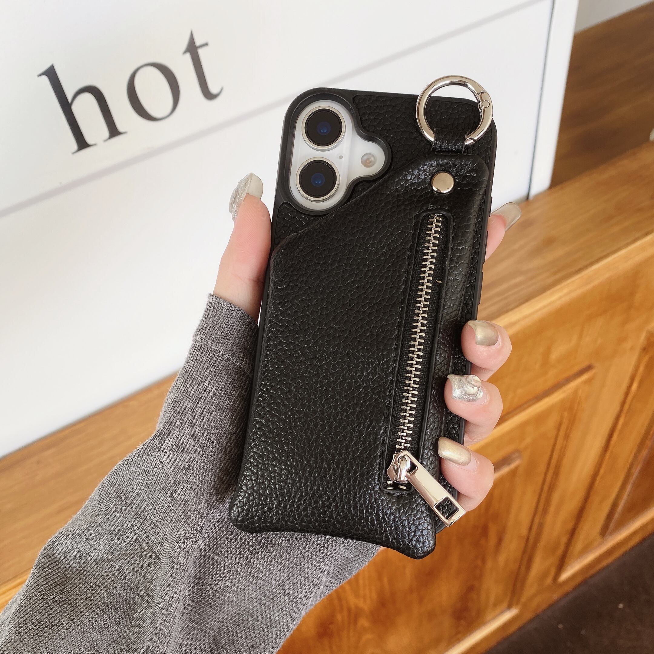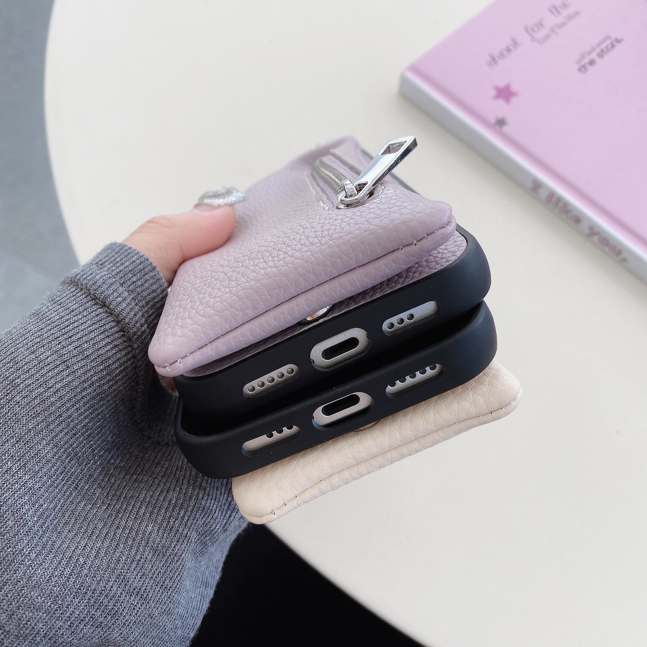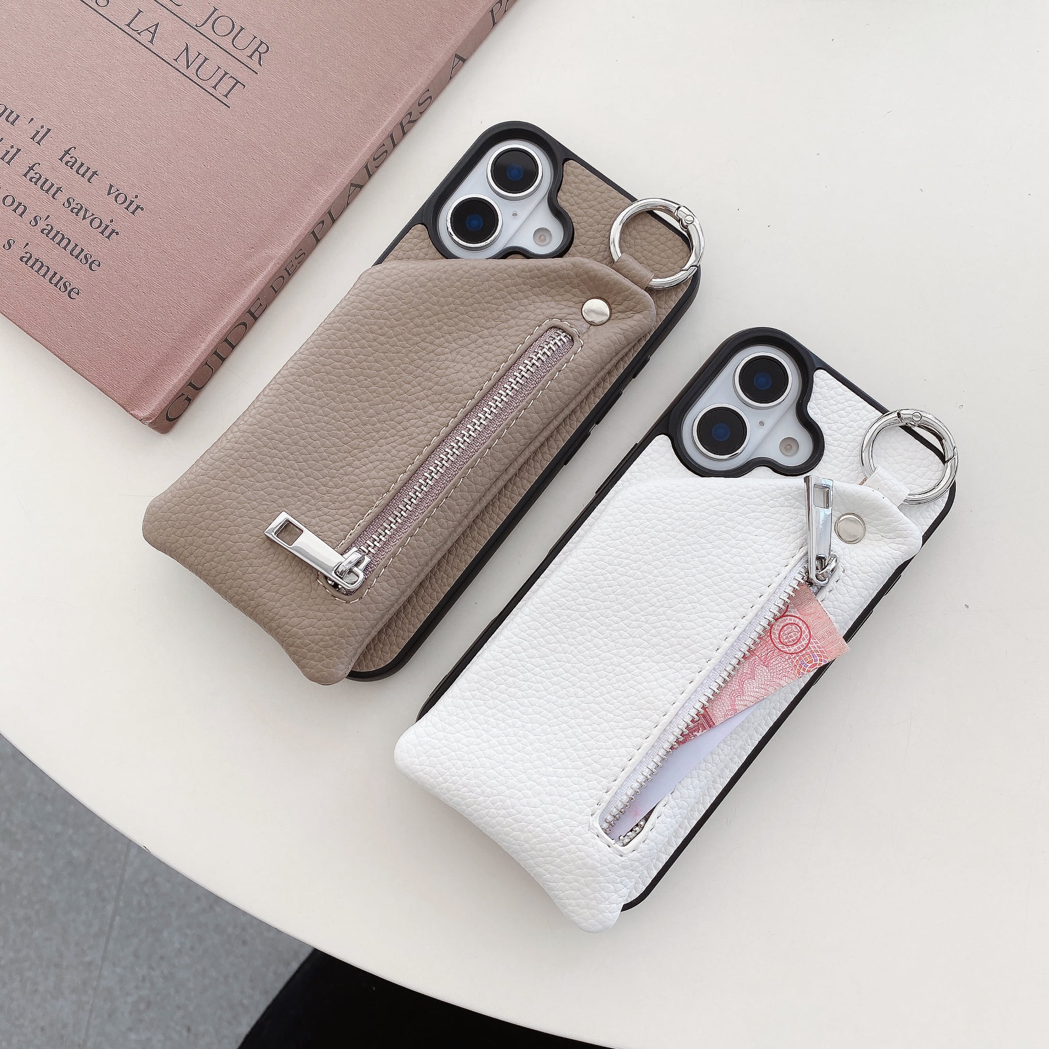 ファスナーポーチ付き iphone16 15 14 13 12 11 ケース 全機種対応 小銭入れ カード収納 スマホケース 耐衝撃 カラビナ付き