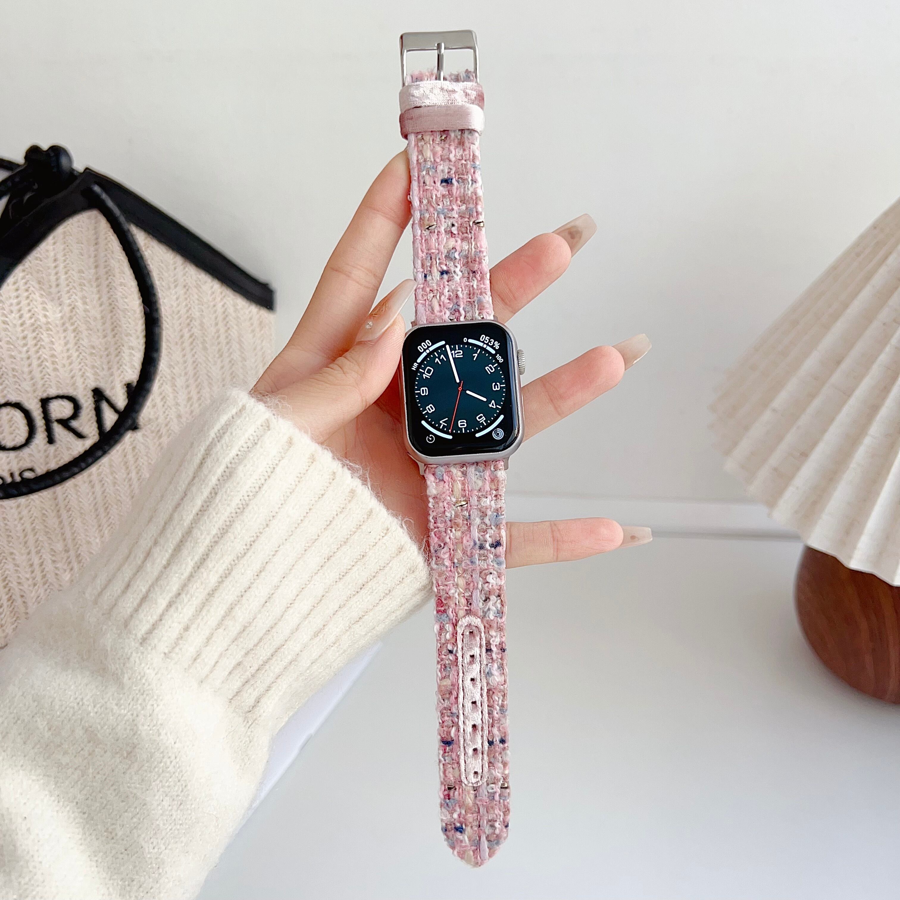 ツイード柄 Apple Watch バンド 本革 49/46/45/44/42mm 42/41/40/38mm 高級 交換ベルト アップルウォッチバンド for Apple Watch SE(第2/1世代)/Series10/9/8/7/6/5