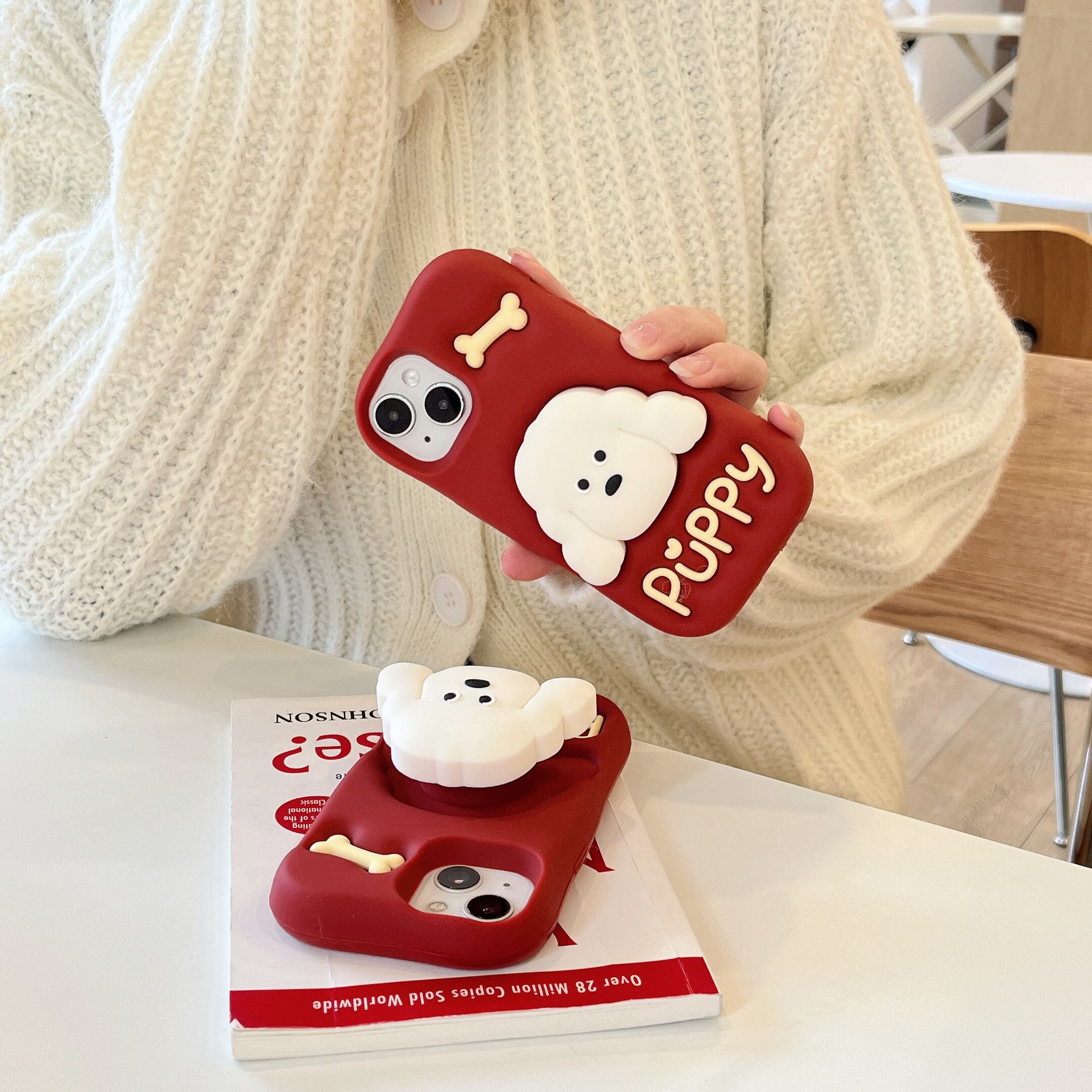 パピー iPhone 16 15 14 13 ケース 可愛い 犬 ドッグ シリコンケース スタンド機能 おしゃれ