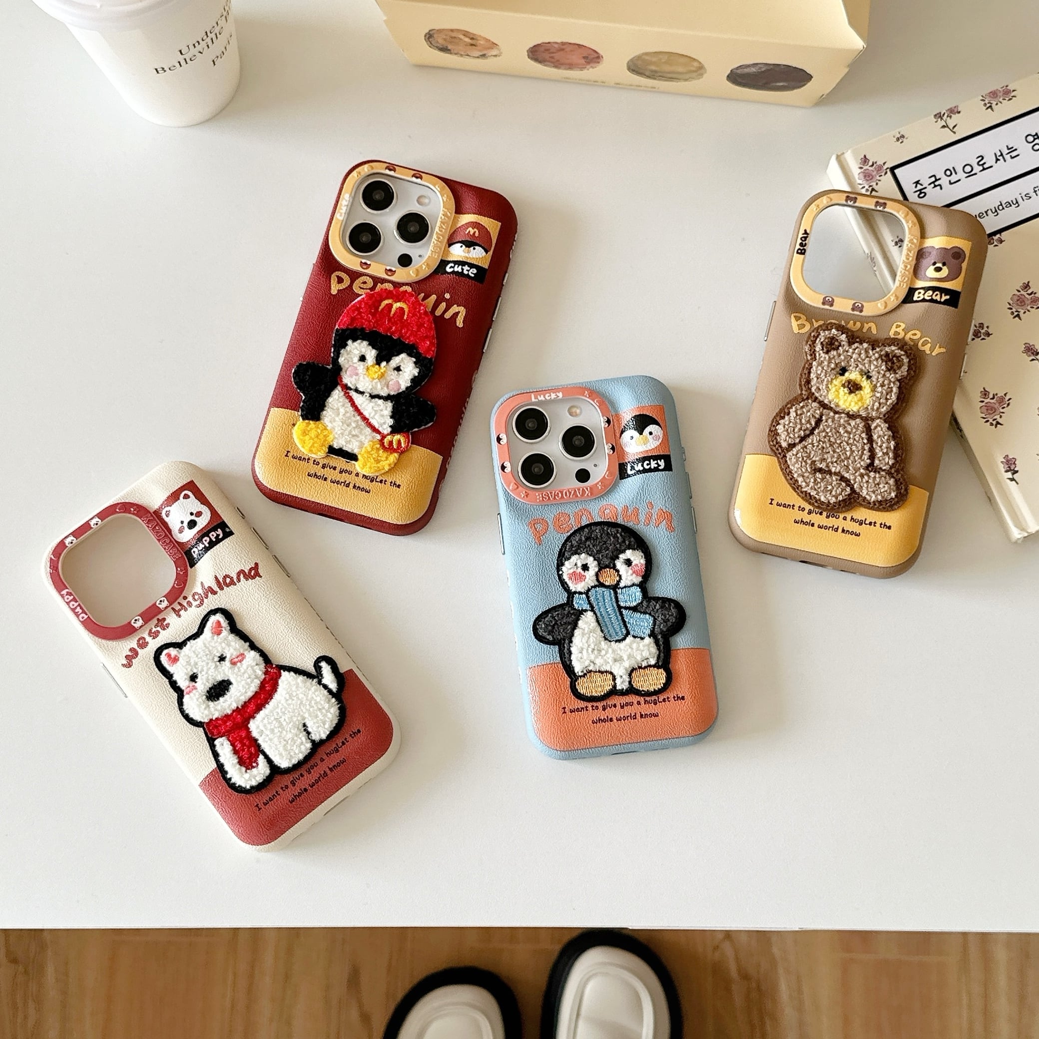 動物 刺繍 iPhone 16 15 14 13 ケース もこもこ ペンギン くま 犬 テリア 可愛い スマホケース