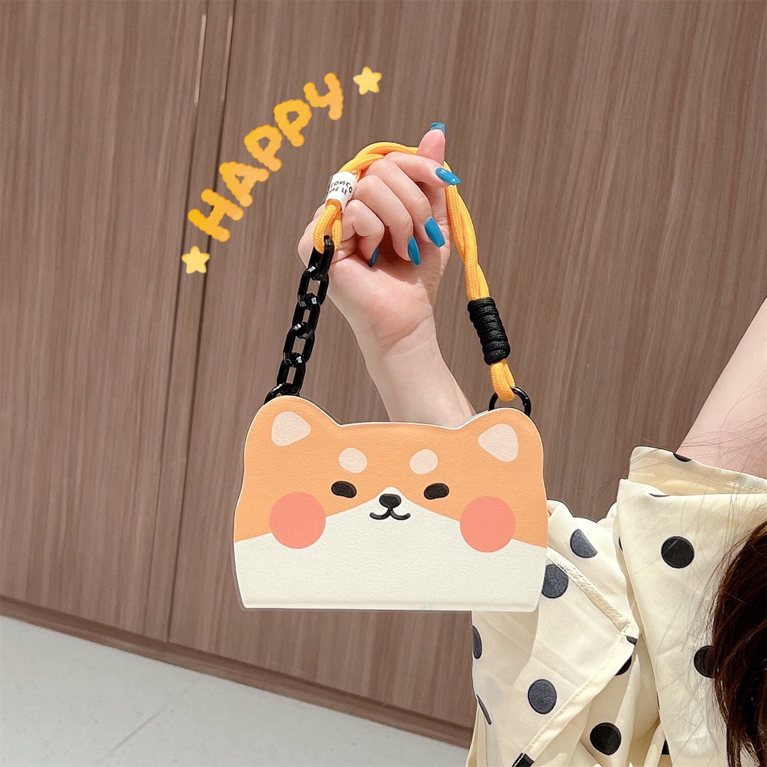 犬好き必見!キュートな犬イラスト 手帳型 iPhone 15/14/13 ケース ハンドストラップ付き